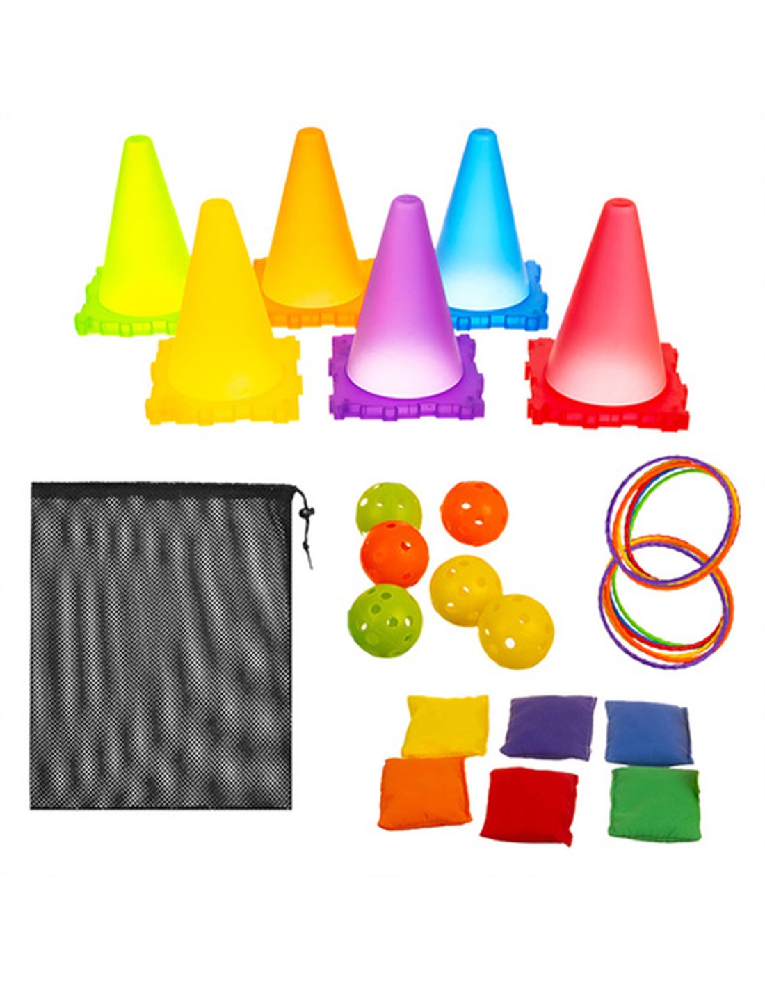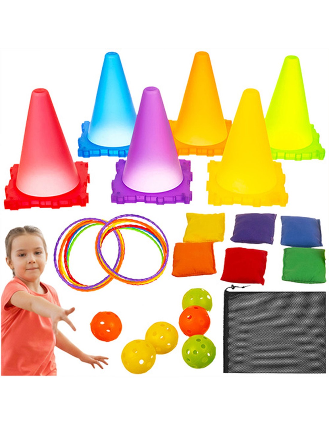 „3 viename“ arkadinis žaidimas „Mesk į taikinį“! 30 dalių rinkinys su kūgiais, lankais ir maišeliais. Lavina koordinaciją. Saugus, ryškus ir tinkamas žaisti visur!