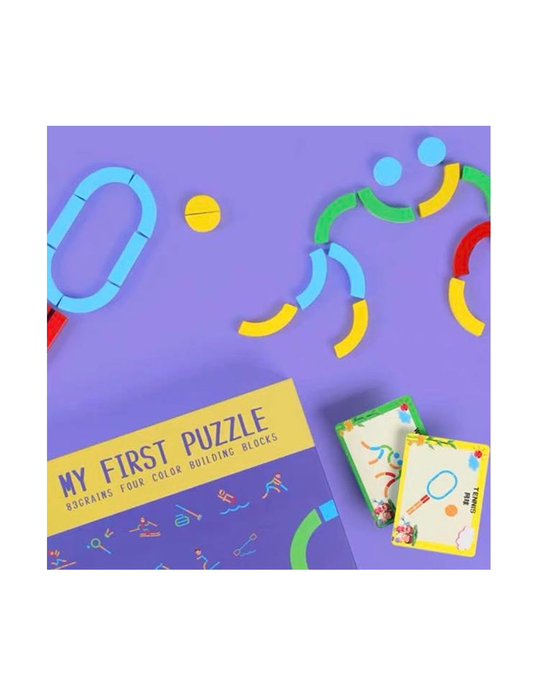 Kūrybinė medinė dėlionė „My First Puzzle“ su 83 detalėmis! Kurk sportininkų judesius, mokykis sporto šakų ir lavink motoriką. Saugus Montessori žaislas nuo 3 m.