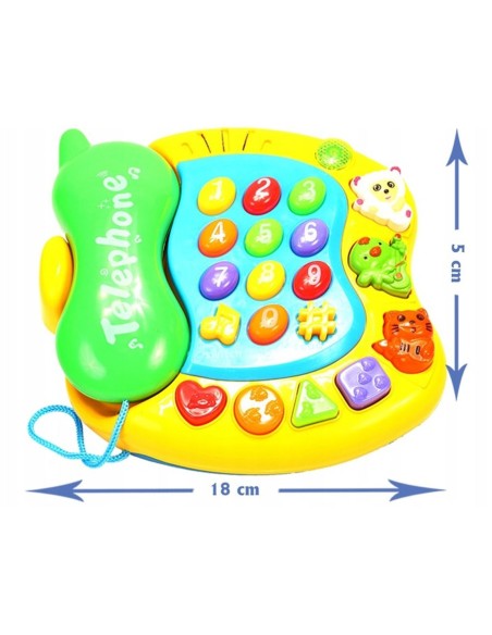 Interaktyvus telefonas mažyliams skaičių ir gyvūnų pavadinimų mokymuisi anglų kalba.
