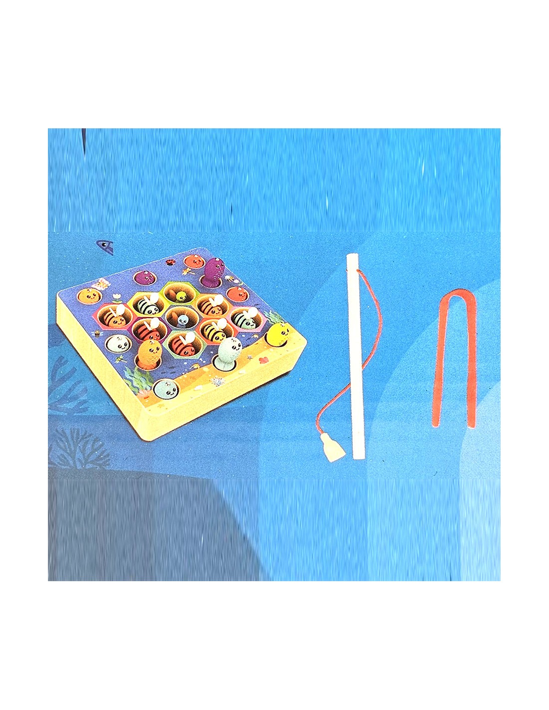 Šis unikalus medinis „2 in 1“ žaidimas, skirtas vaikams nuo 3 metų, yra puiki priemonė lavinti smulkiąją motoriką, rankų ir akių koordinaciją bei kantrybę. Vaikas, naudodamasis magnetine meškere, gaudo ryškias žuvytes, o su pincetu – spalvotas bites. Šis žaidimas yra puikus pavyzdys, kaip mokymasis ir pramogos gali būti sujungti į vieną veiklą.