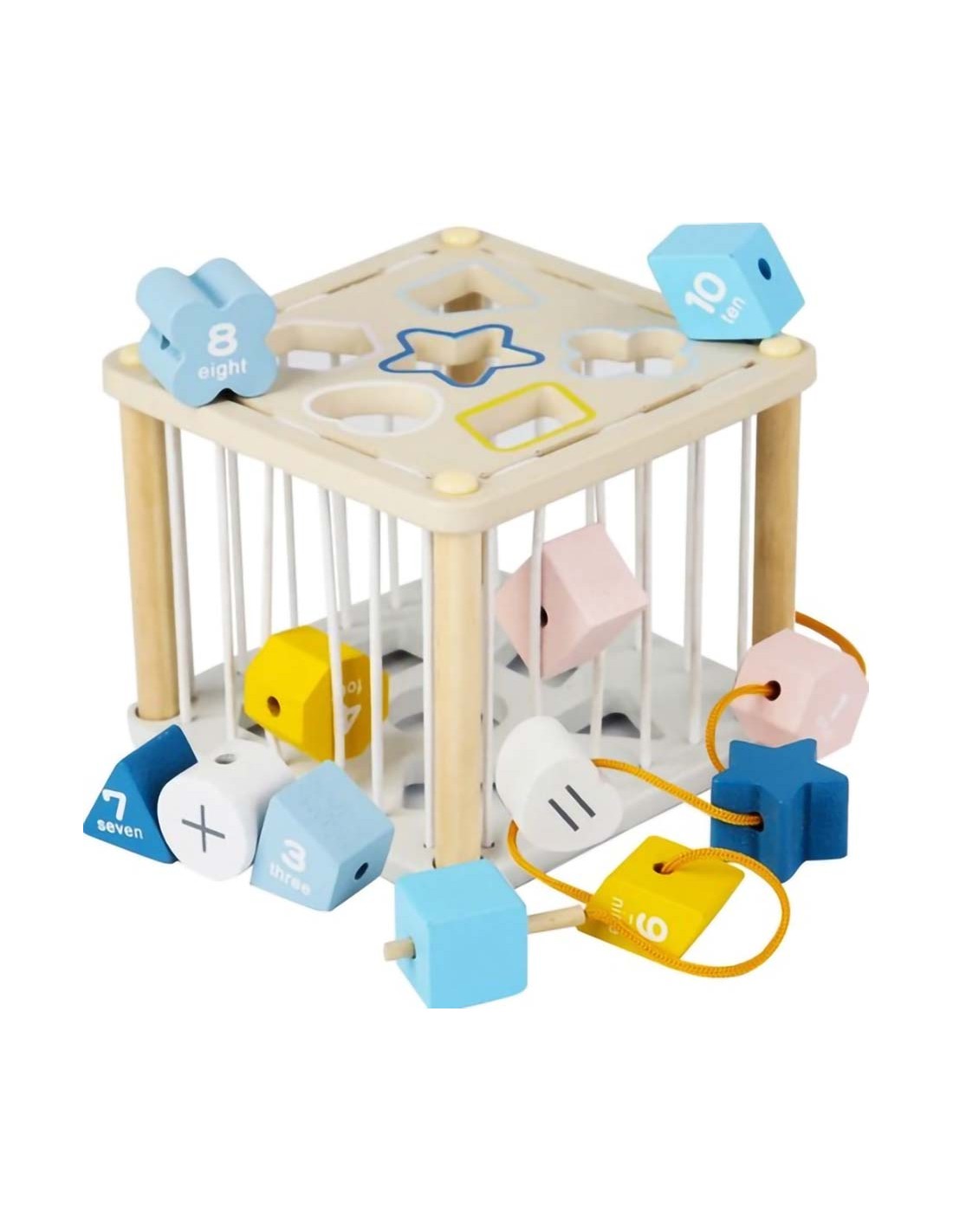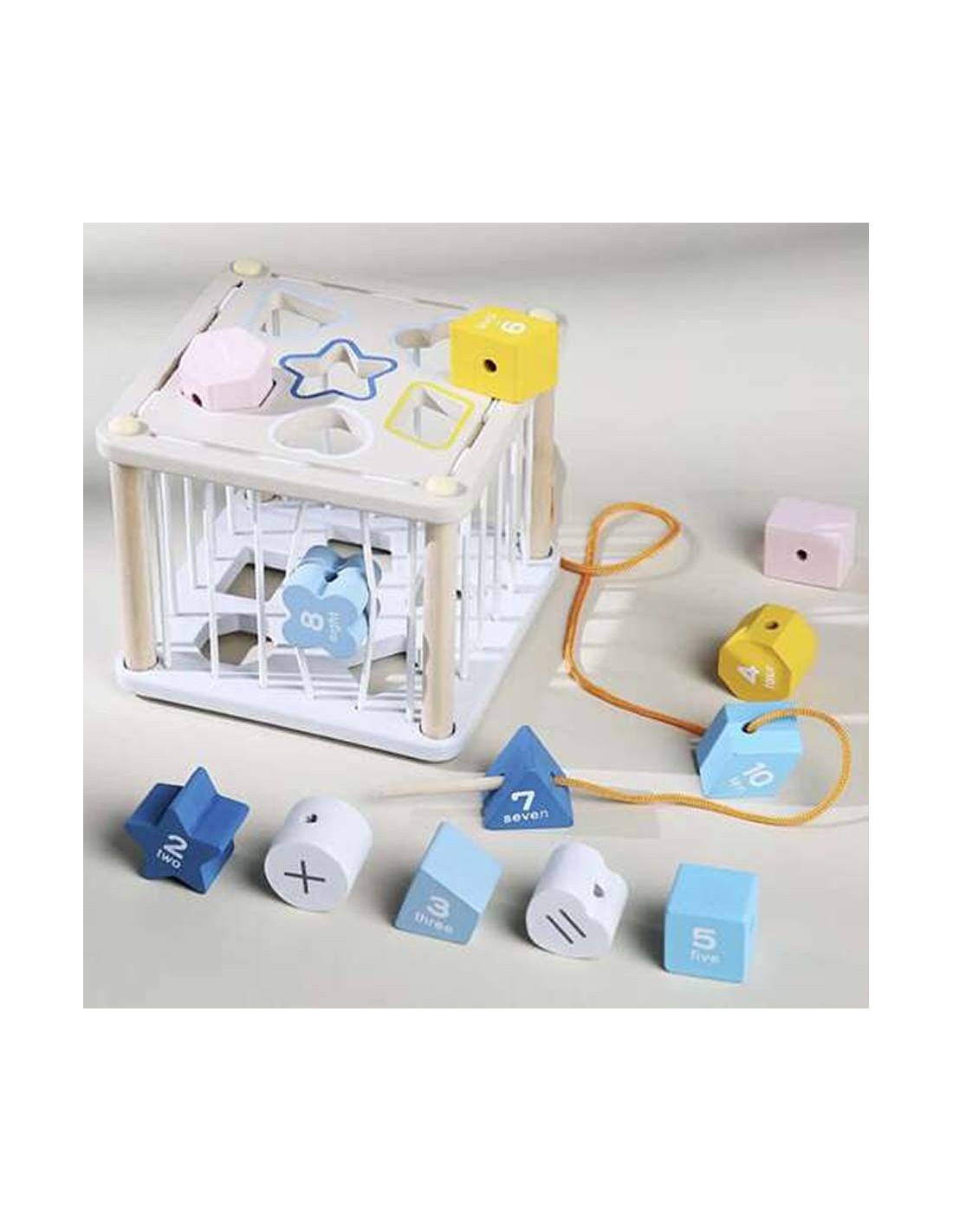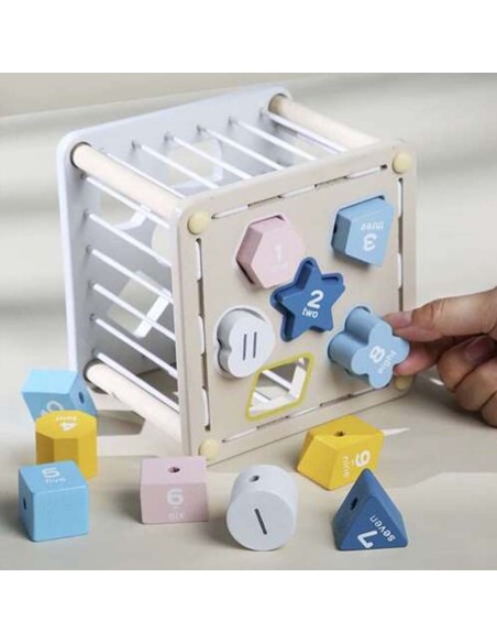 Montessori Medinė Rūšiuoklė - sensorinis kubas su vėrimo priemonė