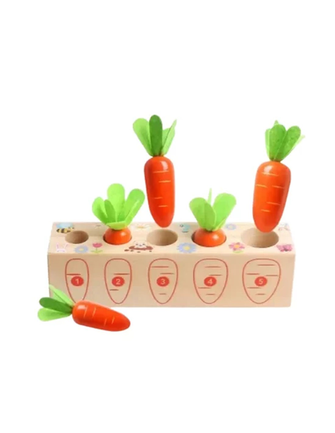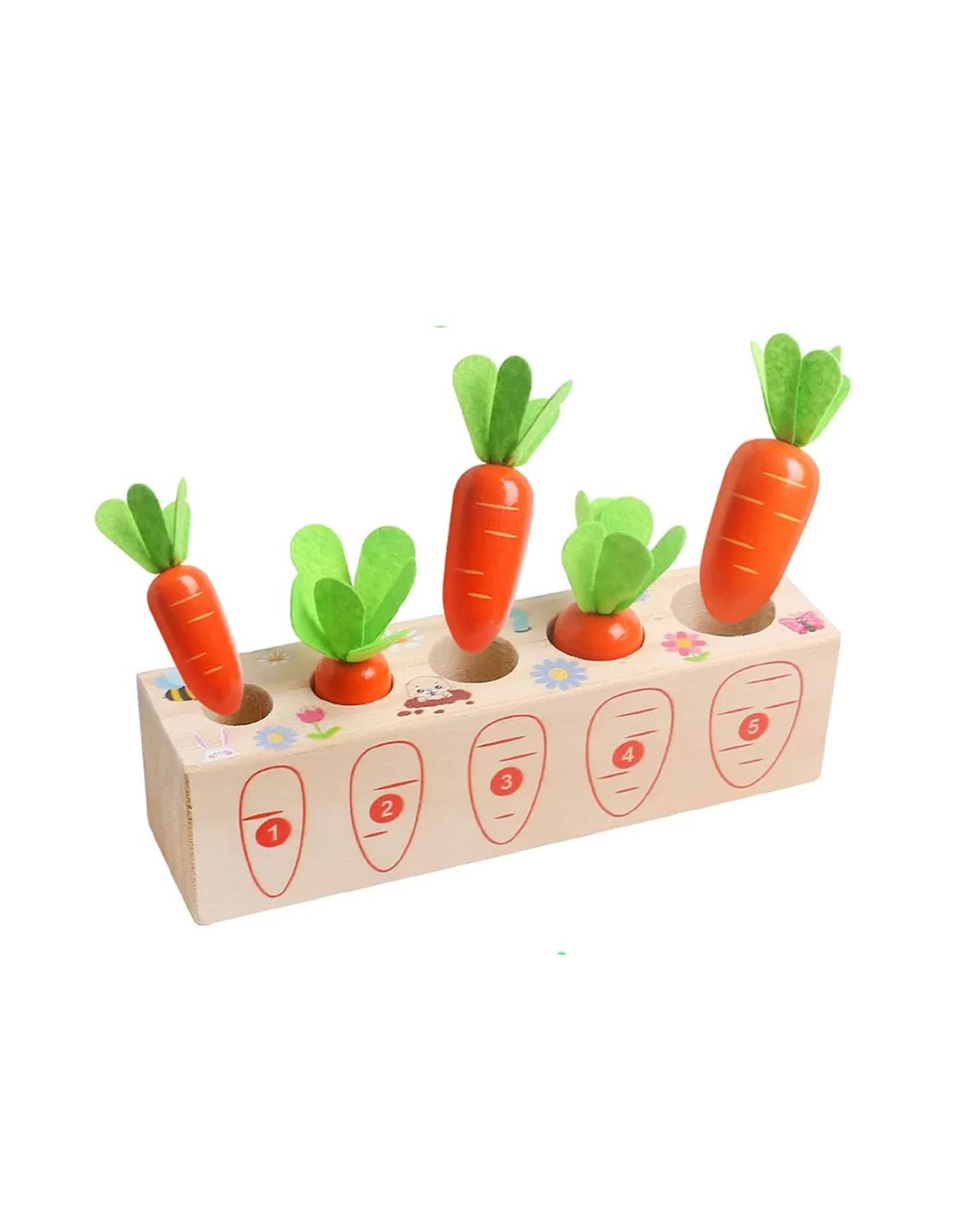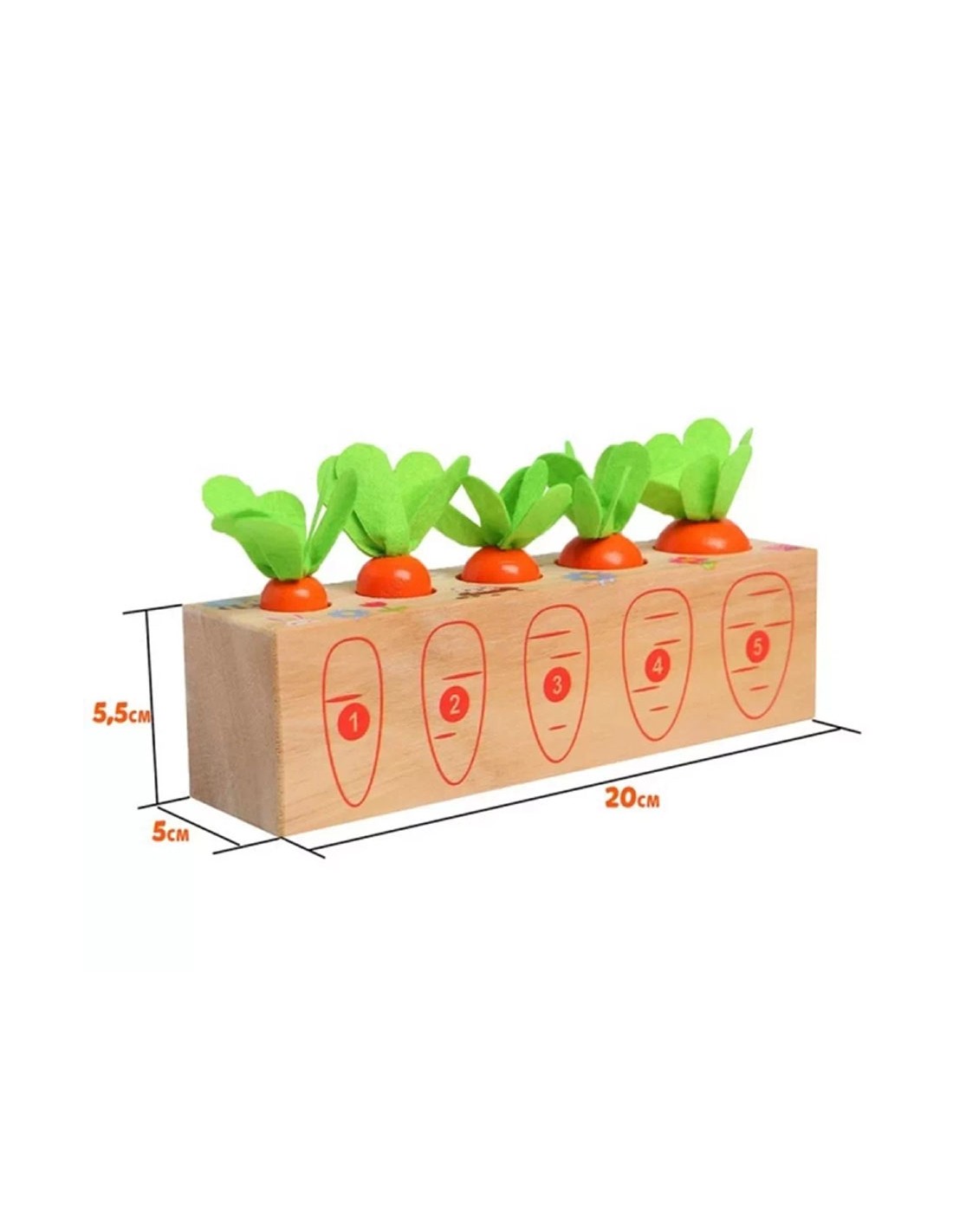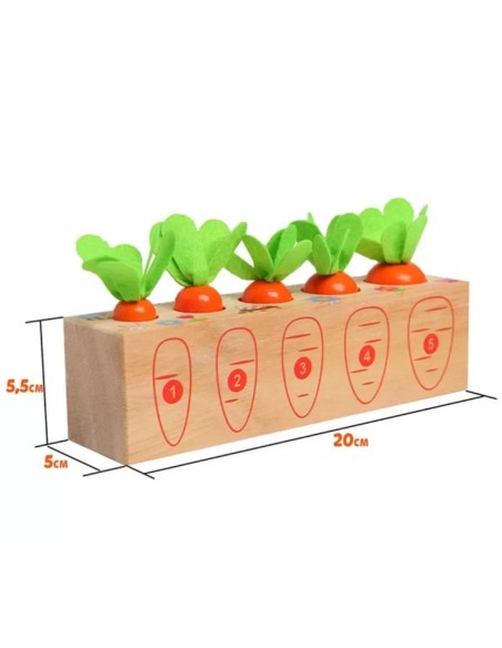 Paverskite mokymąsi skaniu nuotykiu! Ši ryški ir linksma medinė morkų lysvė yra sukurta pagal garsųjį Marijos Montessori metodą, siekiant padėti mažiesiems tyrinėtojams pažinti juos supantį pasaulį per lytėjimą ir logiką. Tai suktas galvosūkis, kuris ne tik džiugins oranžinėmis spalvomis, bet ir taps pirmąja vaiko pamoka apie gamtą, skaičius bei formas.