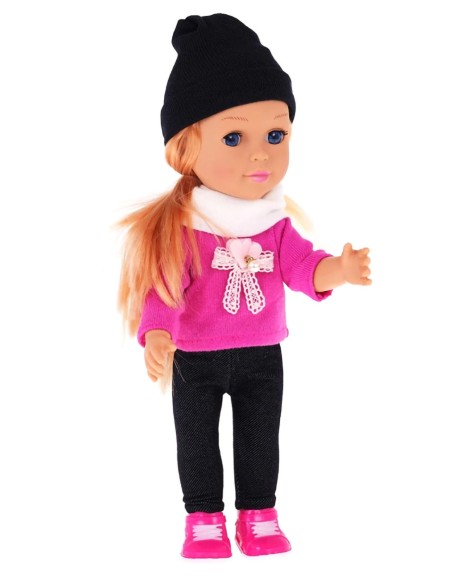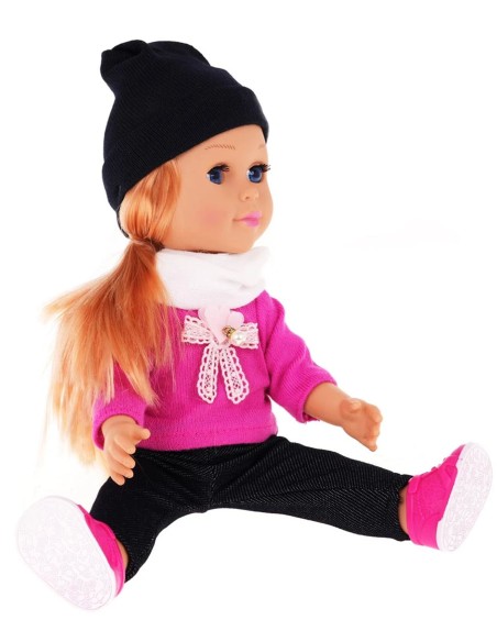 Ši graži lėlė Klaudia – puiki dovana vaikams nuo 3 metų. Kruopščiai pagaminta ir atkreipiant dėmesį į kiekvieną detalę, ji yra visiškai saugi ir patiks kiekvienam vaikui. Lėlė apsirengusi stilingu megztiniu, kelnėmis, batais, kepure ir skara, o judančios galūnės ir galva leidžia lengvai ją aprengti ir žaisti įvairius vaidmenų žaidimus. Be to, paspaudus lėlės pilvuką, pasigirsta linksma dainelė, suteikianti žaidimui dar daugiau džiaugsmo.