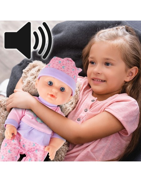 Ši žavinga lėlytė skleidžia tikroviškus kūdikio garsus ("mama", "tėti", juokas, verksmas, plepėjimas), ją galima maitinti iš buteliuko ir ji apsišlapina! Nuimami drabužėliai ir judančios galūnės suteikia dar daugiau žaidimo galimybių. Puikus žaislas, mokantis rūpintis ir lavinantis vaizduotę! Tinka vaikams nuo 3 metų.
