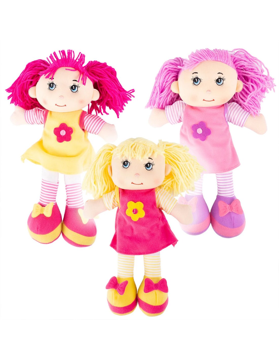 1 x skudurinė lėlė (35 cm) spalvingoje suknelėje.