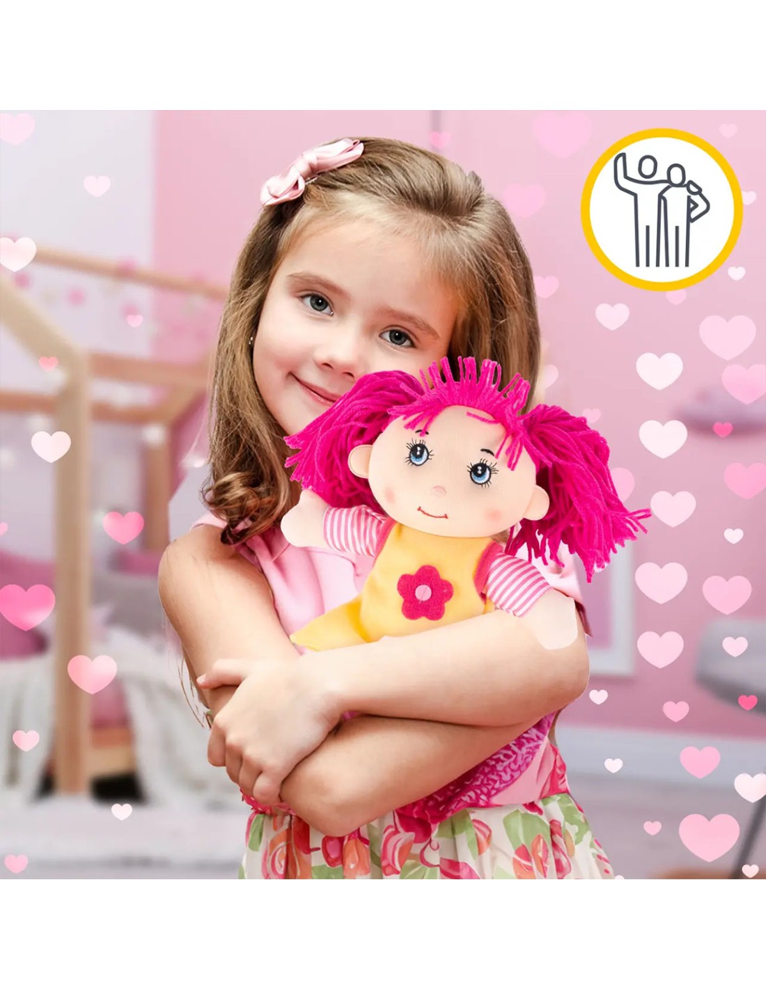 Minkštumas ir jaukumas: Dėl lengvo svorio ir minkšto užpildo, lėlė puikiai tinka ne tik žaidimams, bet ir kartu užmigti, nešiotis į darželį ar keliones.