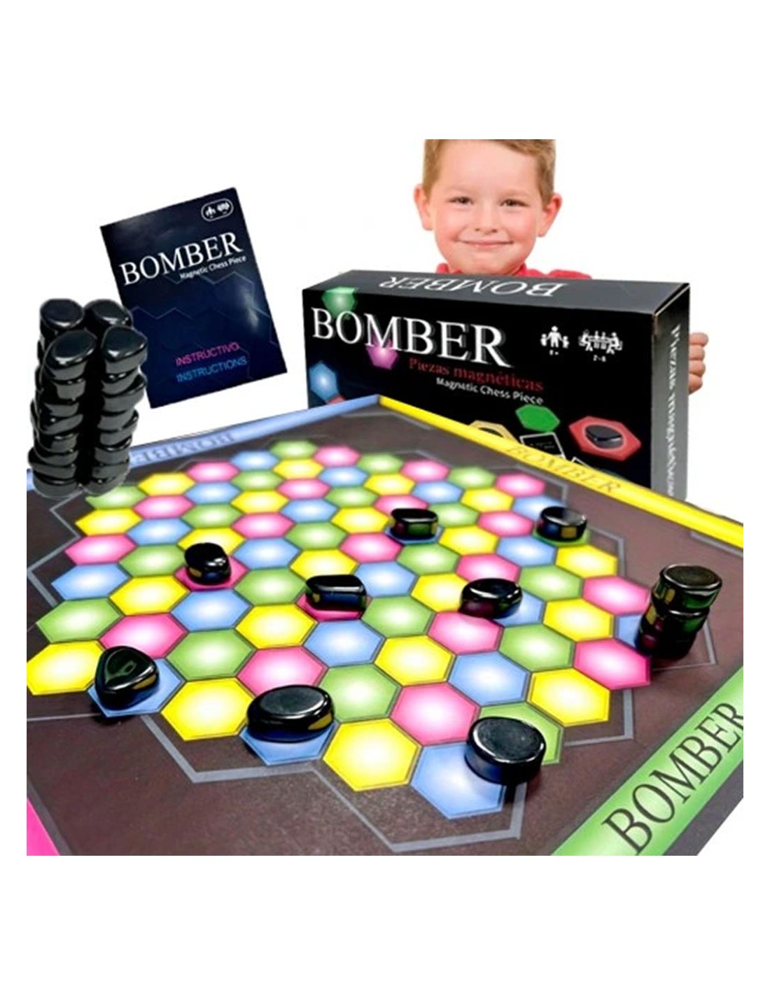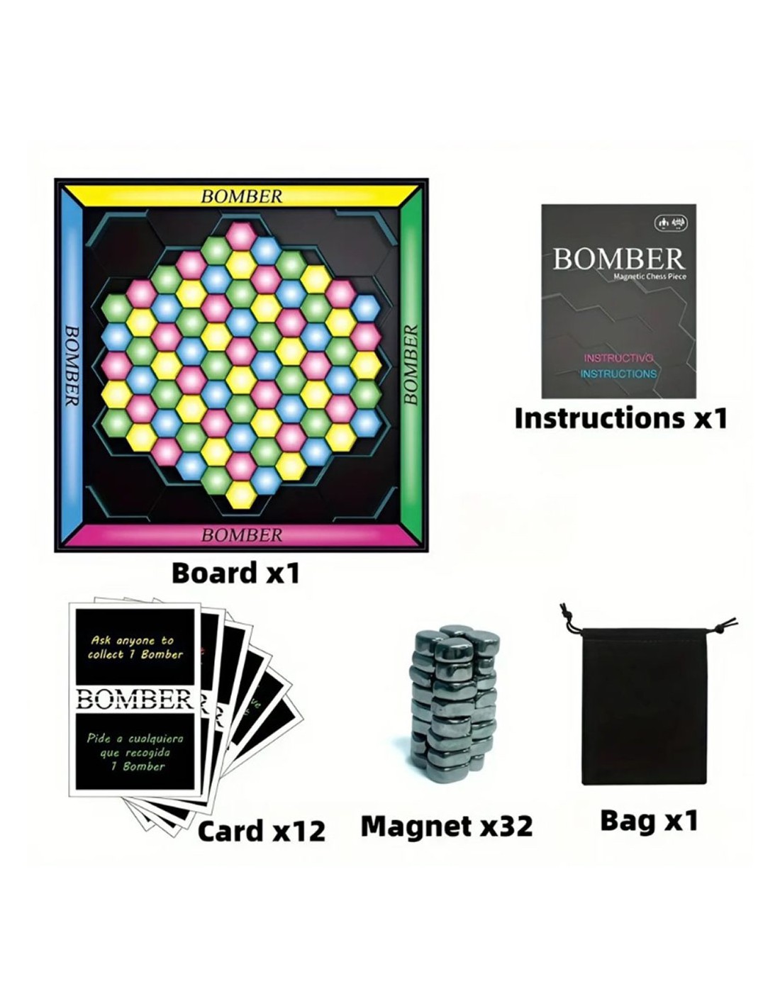 Šis magnetinis šachmatų žaidimas „Magnetic Battle Bomber Adventure Chess“ yra puikus edukacinis žaislas, skirtas lavinti strateginį mąstymą ir loginį mąstymą. Rinkinį sudaro magnetiniai akmenys ir speciali žaidimo lenta, todėl žaisti galima bet kur – namuose ar kelionėje.