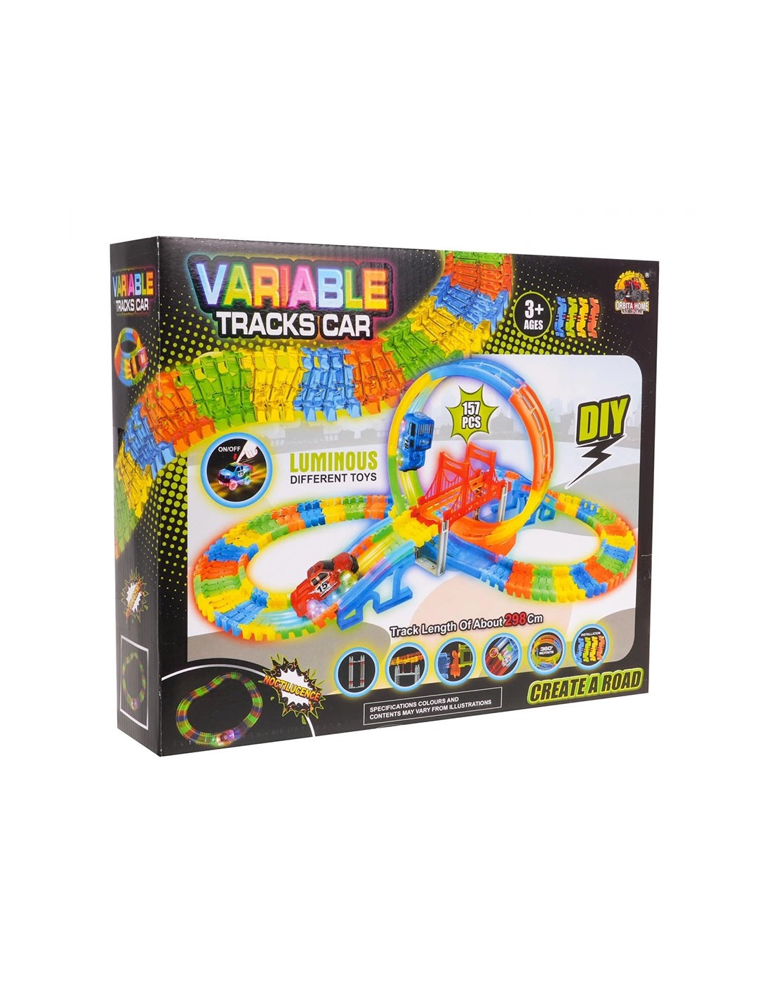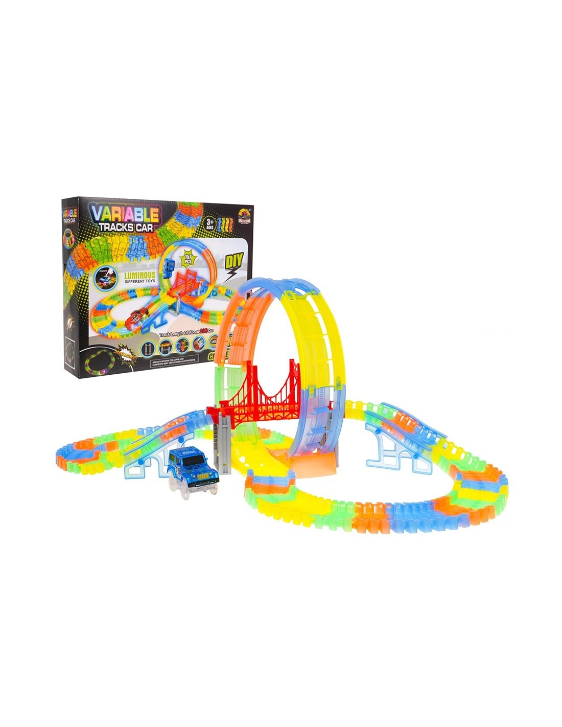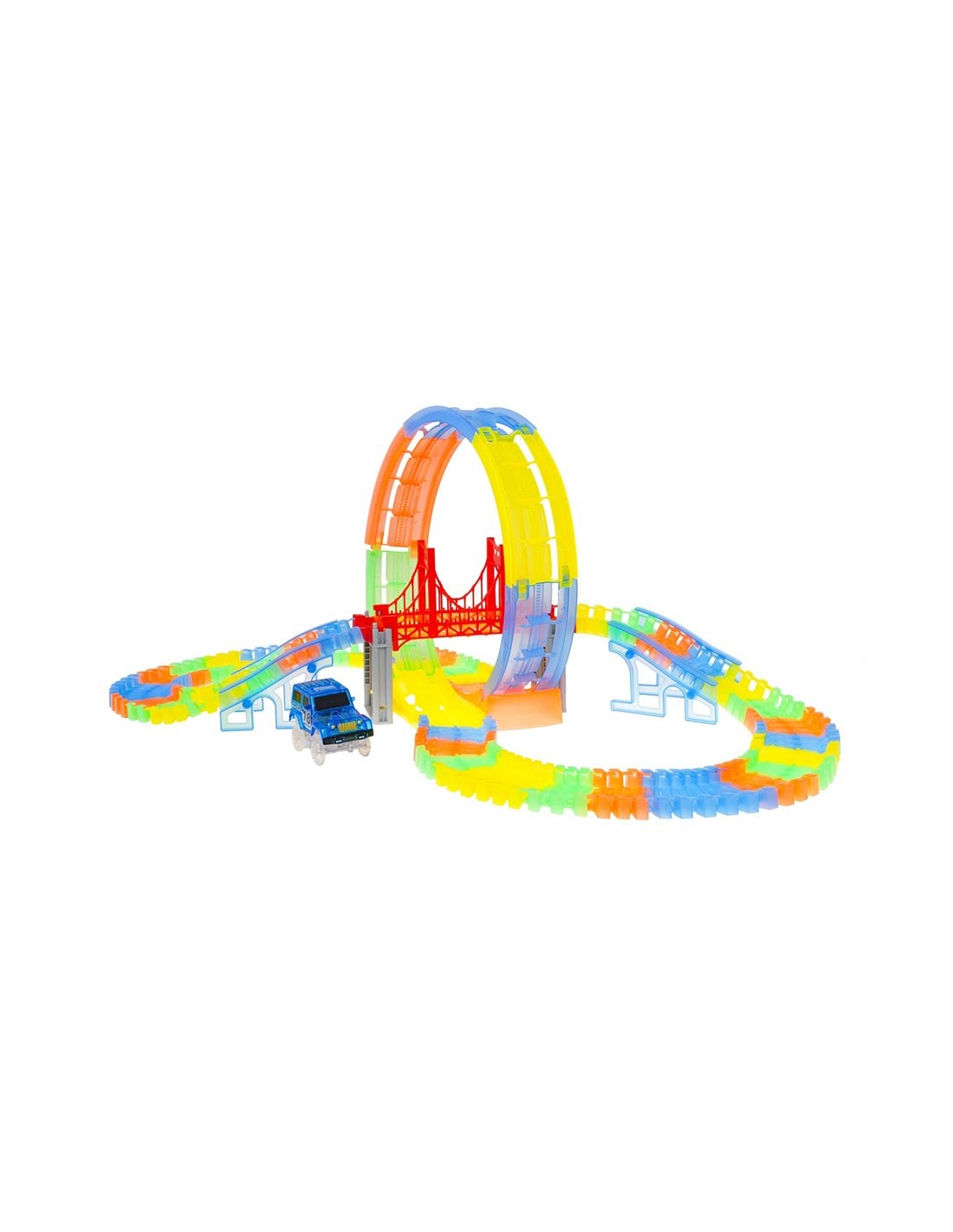 Pasiruoškite lenktynėms, kurios naktį paverčia magišku šviesų šou! Ši lanksti fluorescencinė trasa leidžia vaikams ne tik lenktyniauti, bet ir tapti tikrais inžinieriais. Išjunkite šviesą, užveskite LED automobilį ir stebėkite, kaip jis skrieja per 360 laipsnių kilpą neoninėje trasoje!