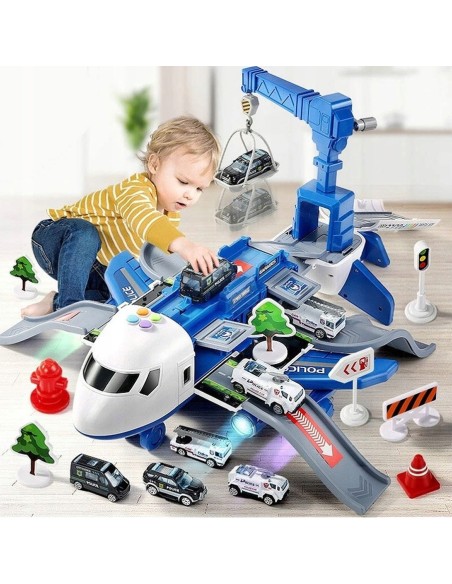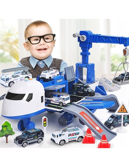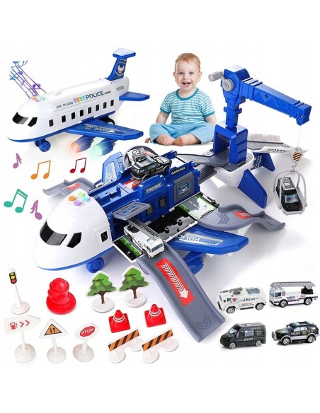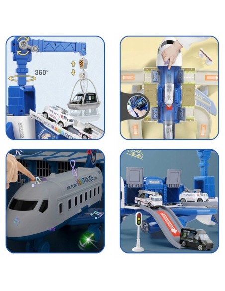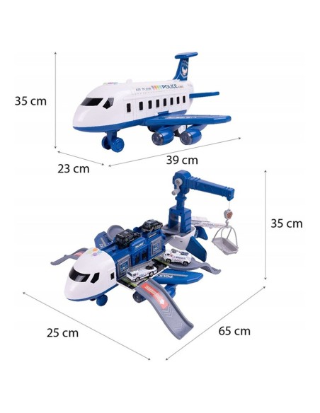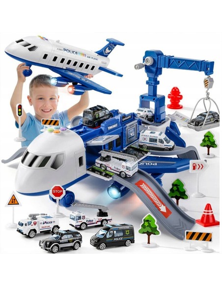 Didžiulis sulankstomas policijos lėktuvas su kranu ir automobilių stovėjimo aikštele - puiki dovana Jūsų vaikui! Lavina motorinius įgūdžius, kūrybiškumą ir socialinius įgūdžius.