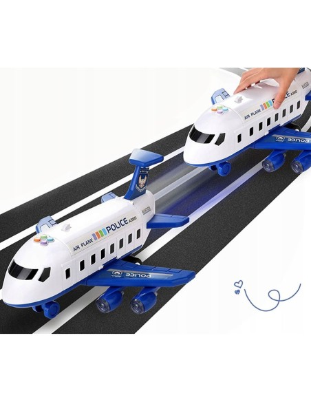 Suteikite savo vaikui valandų valandas smagių ir lavinančių pramogų su šiuo interaktyviu policijos lėktuvu! Didžiulis lėktuvas transformuojasi į policijos nuovadą su daugybe priedų, įskaitant šviesos ir garso efektus, kraną ir automobilių stovėjimo aikštelę.