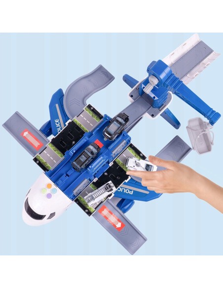 Didžiulis sulankstomas policijos lėktuvas su kranu ir automobilių stovėjimo aikštele - puiki dovana Jūsų vaikui!