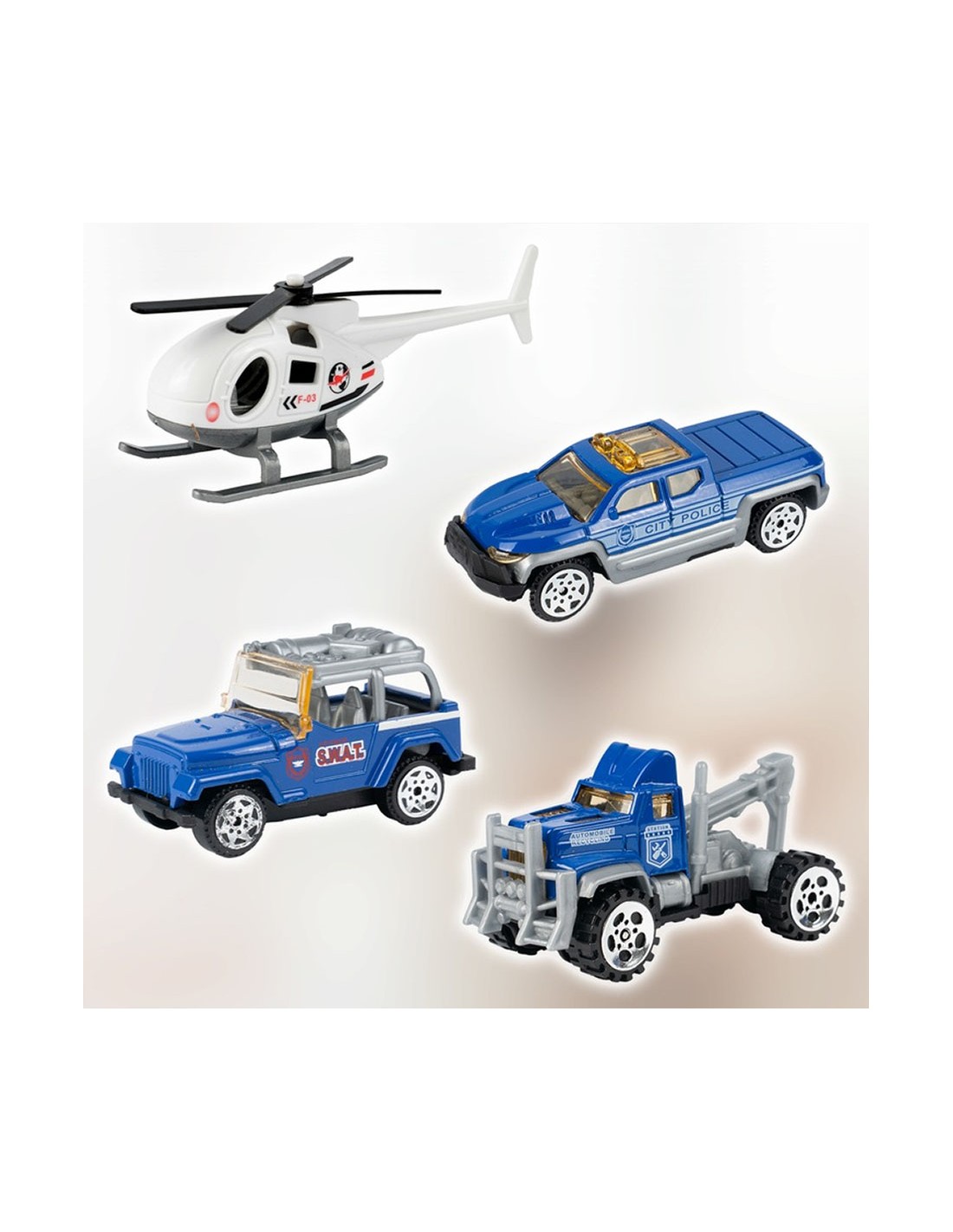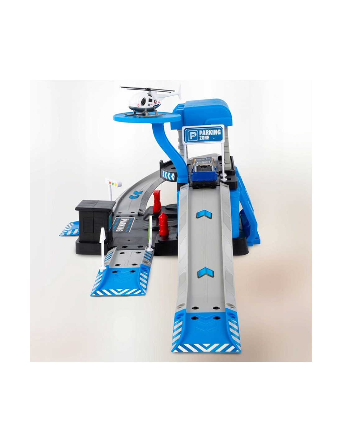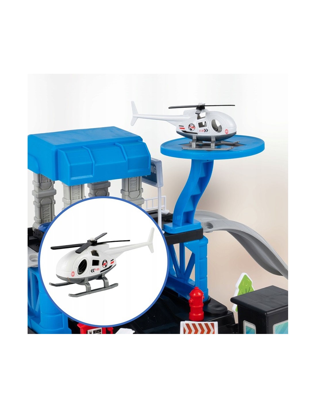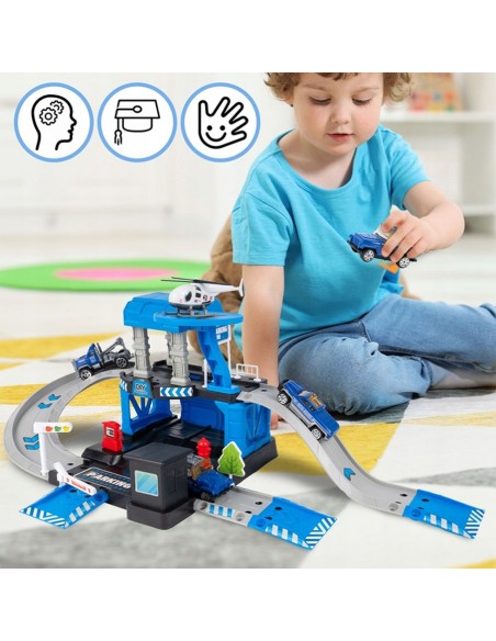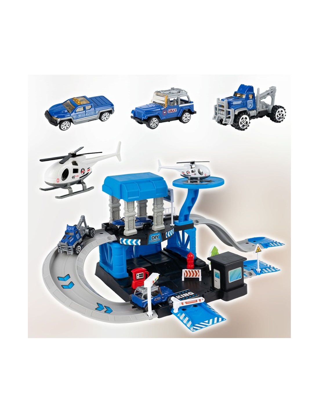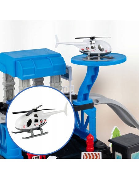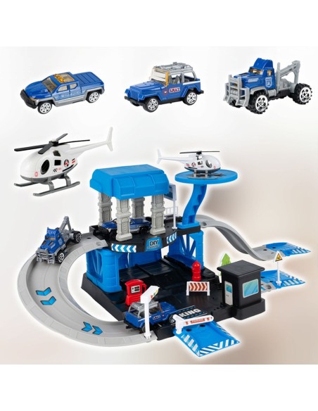 Daugiapakopis Garažas / Policijos Nuovada su 3 Metaliniais Automobiliais ir Sraigtasparniu