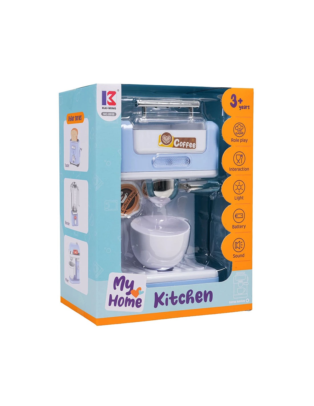 Leiskite savo mažyliui pasijusti tikru barista! Šis modernaus dizaino, mėlynas kapsulinis kavos aparatas yra puikus priedas prie bet kurios žaislinės virtuvės. Interaktyvios funkcijos leidžia vaikui ne tik imituoti kavos ruošimą, bet ir pamatyti, kaip į puodelį bėga tikras vanduo, lydimas realistiškų garsų bei šviesos efektų.