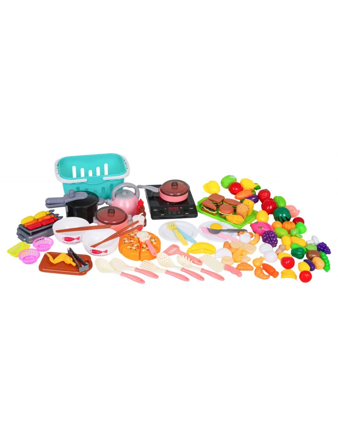 Mega 120 dalių virtuvės rinkinis! Indukcinė viryklė su garsais, puodai, pirkinių krepšelis ir gausybė maisto produktų. Viskas, ko reikia mažajam šefui nuo 3 metų.