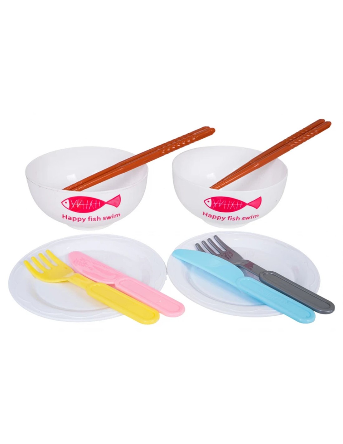 Serviravimas: Lėkštės, dubenėliai, padėklas, stalo įrankiai, lazdelės.