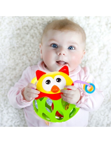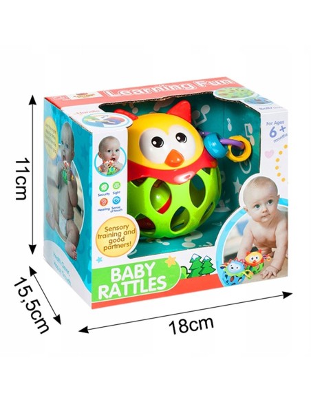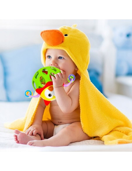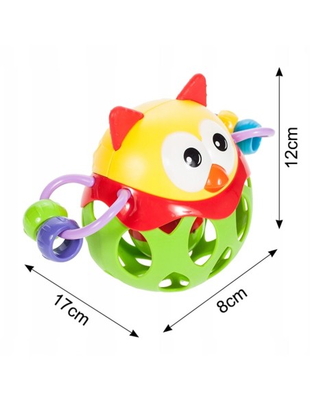 Gyvūno formos barškutis bus labai smagus dėl spalvų įvairovės ir unikalios formos. Kamuolys yra guminis ir neturi aštrių kraštų. Tai bus naudinga dantų dygimo metu.
