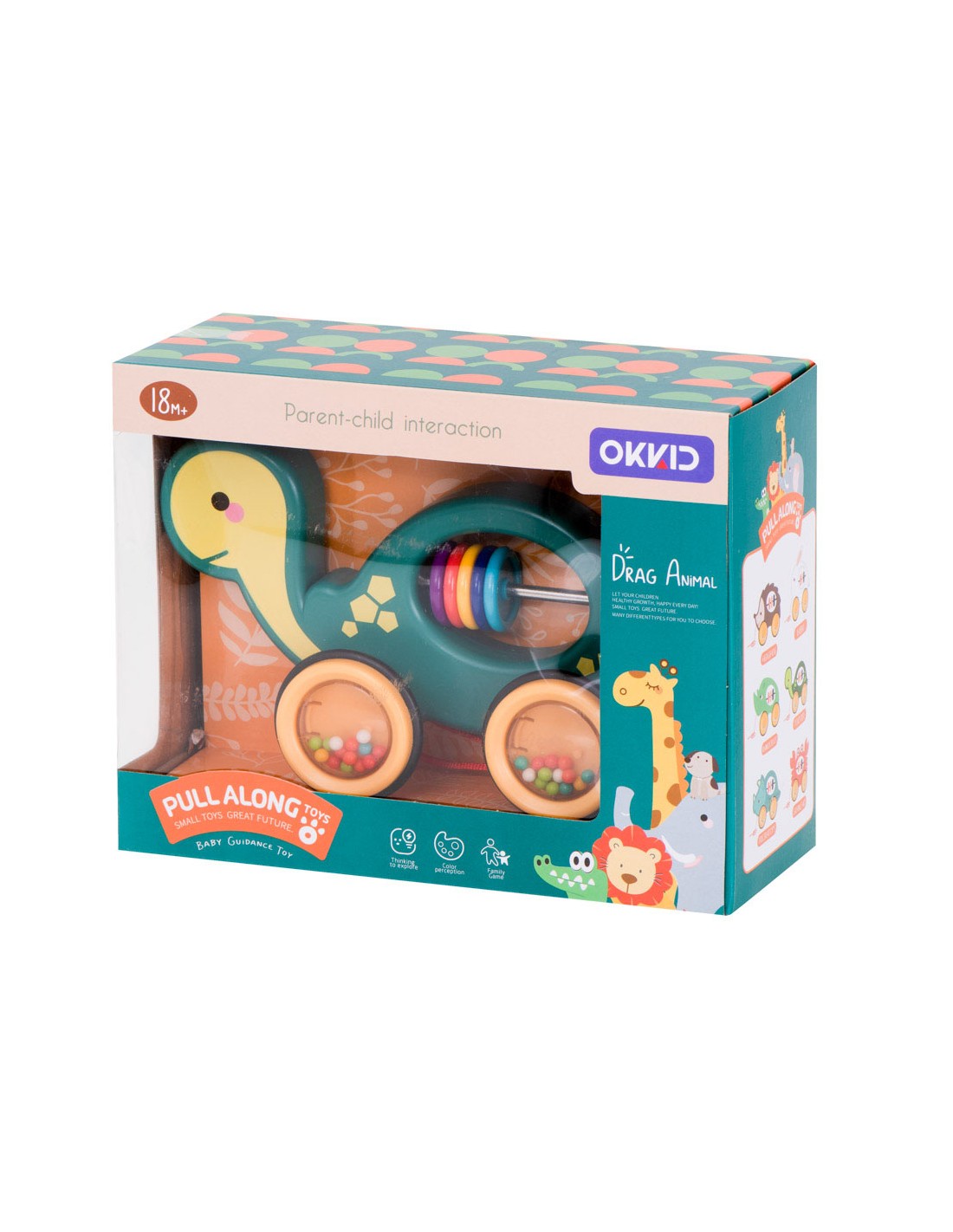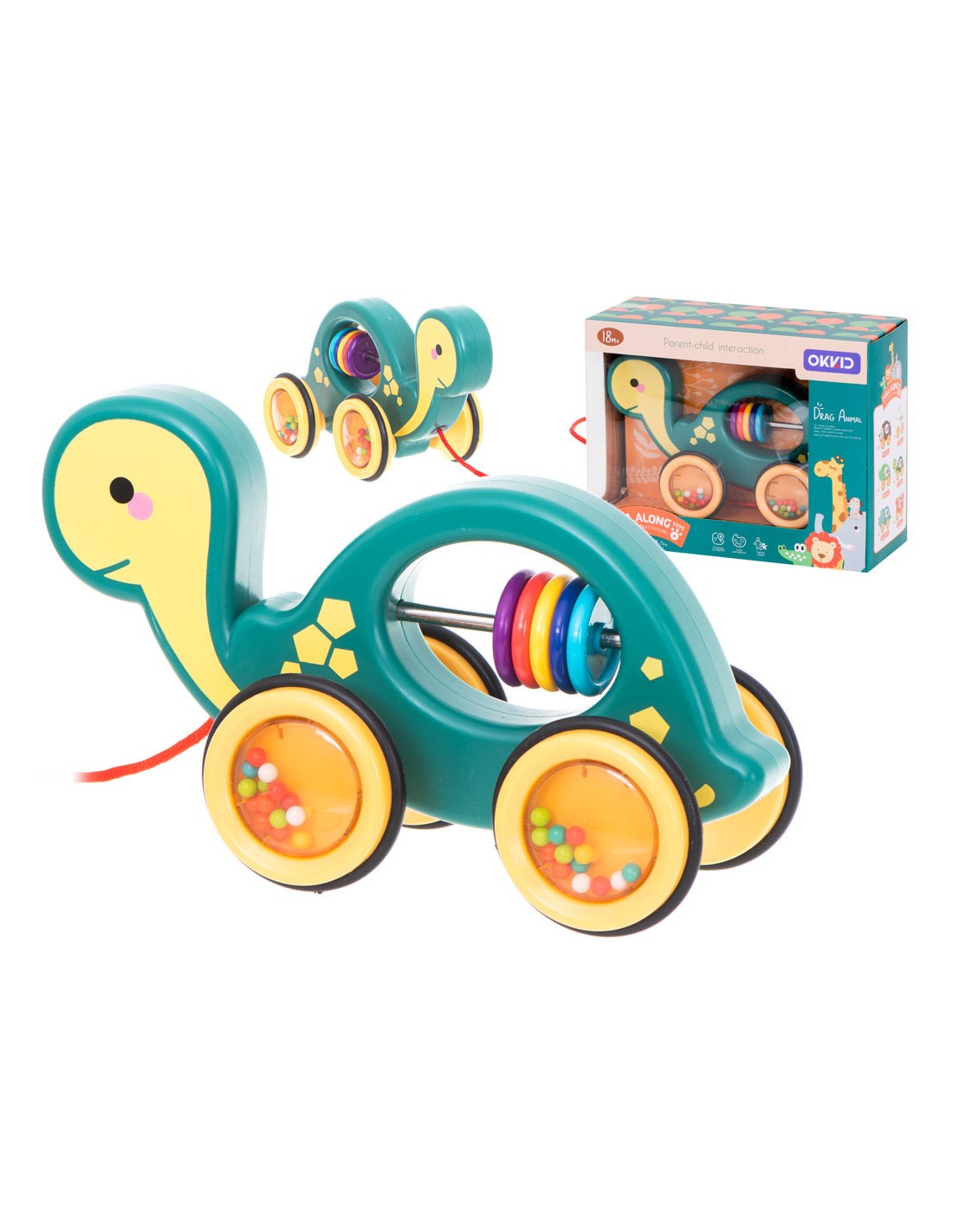Sensorinis barškutis-vėžlys, traukiamas virvele. Lavina motorinius įgūdžius ir stimuliuoja pojūčius. Puikus draugas pirmiesiems žingsniams.