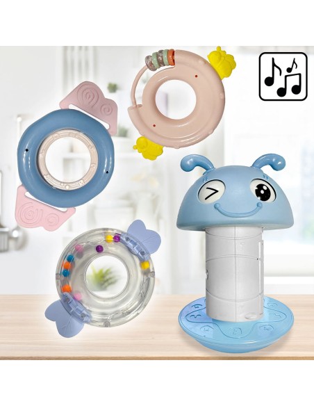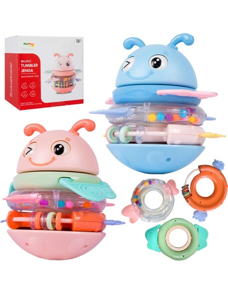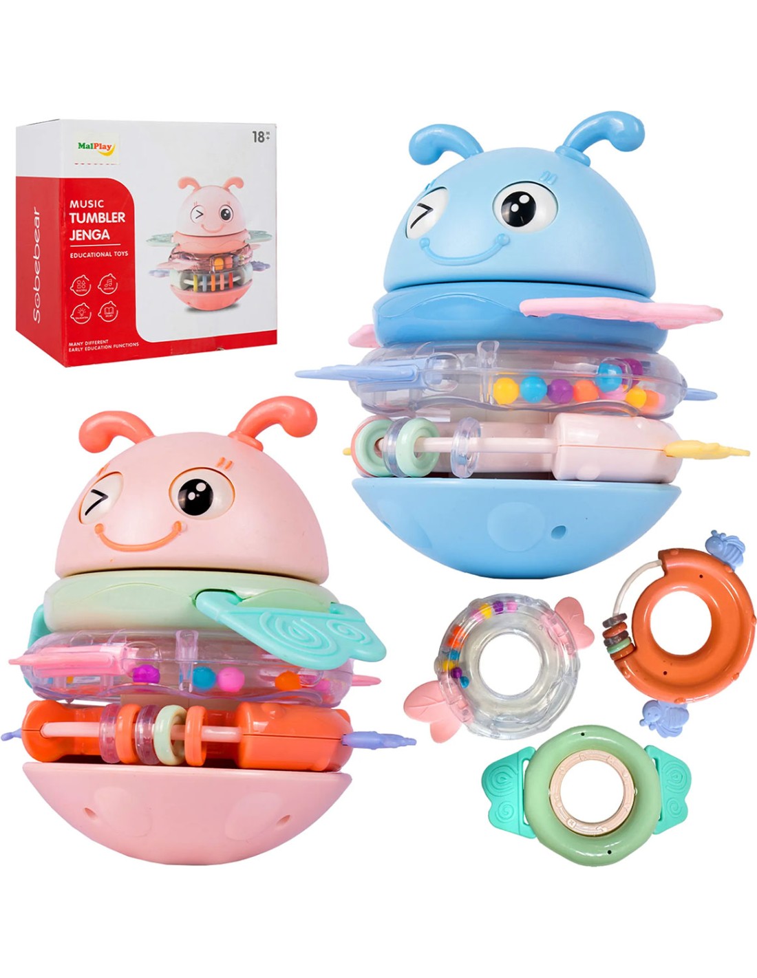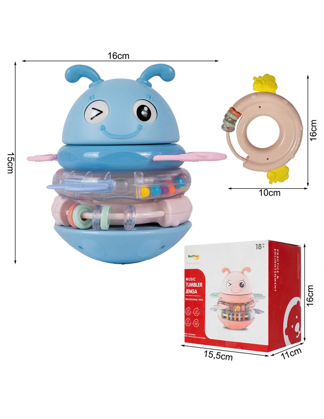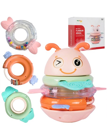 Šis daugiafunkcis žaislas yra puikus pasirinkimas kūdikio vystymuisi nuo pat gimimo. Rinkinys apjungia barškutį, kramtuką ir muzikinę piramidę, todėl tinka skirtingiems vaiko augimo etapams. Vaikui augant, žaislas keičiasi kartu su juo: iš paprasto barškučio ir kramtuko jis virsta muzikine piramide, lavinančia motorinius ir loginius įgūdžius. Su dviem muzikos režimais ir judančiomis bitės akimis, šis žaislas suteikia daug interaktyvių ir edukacinių akimirkų.