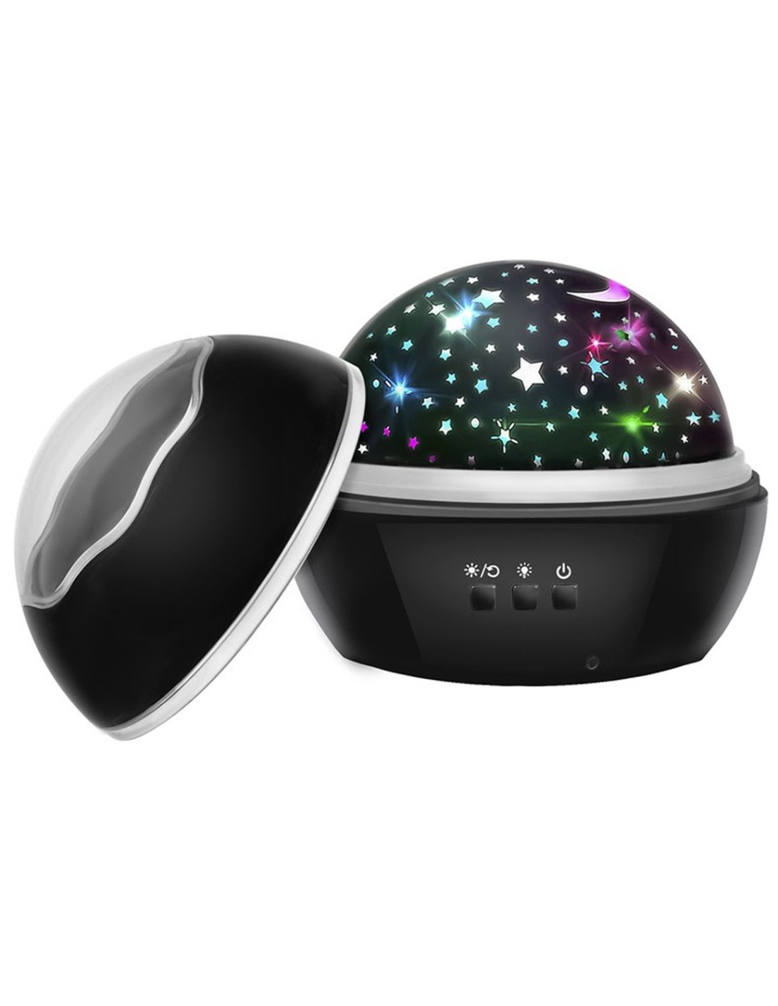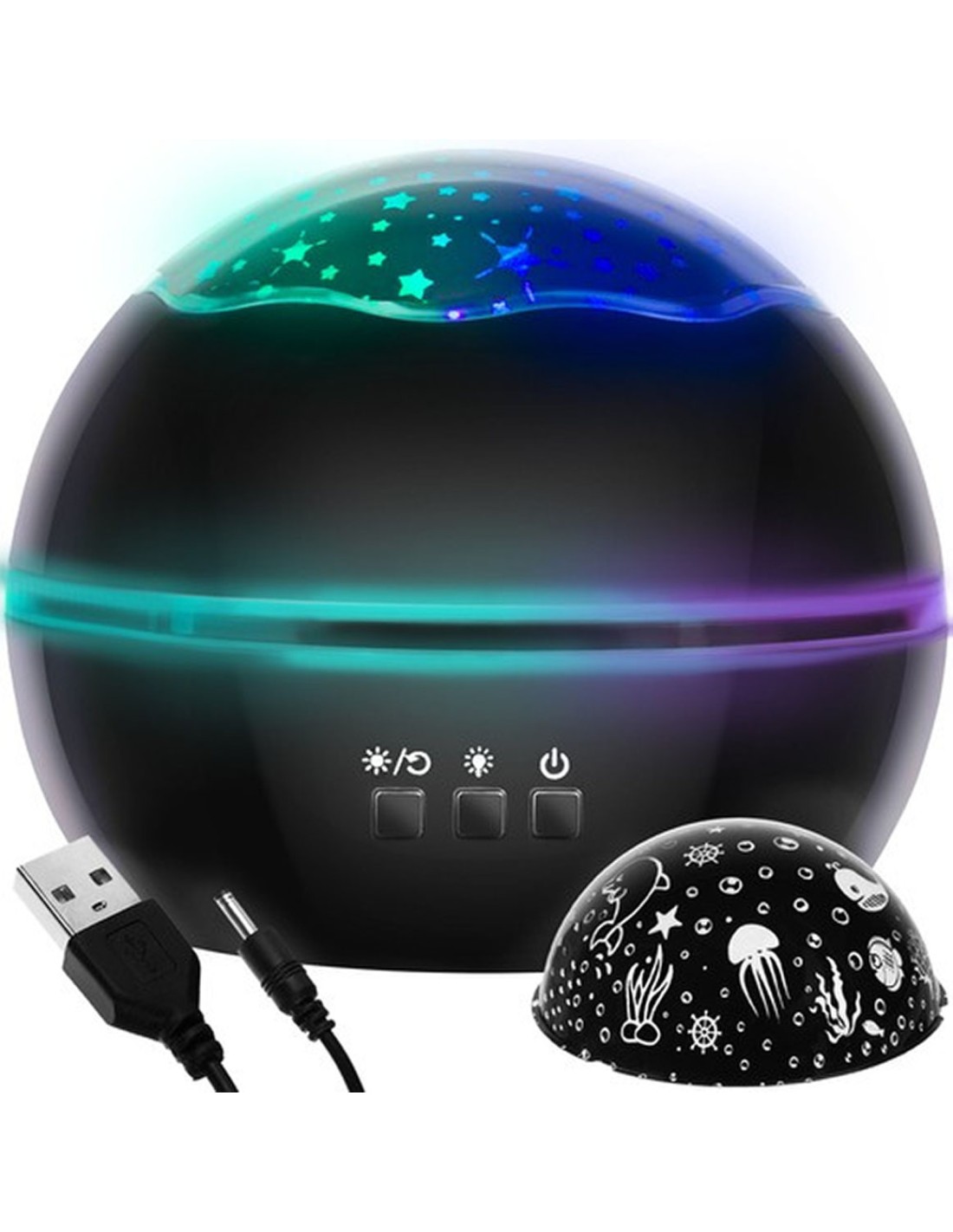 Sukurkite pasakišką atmosferą vaiko kambaryje! Ši stilinga juoda naktinė lemputė-projektorius akimirksniu paverčia lubas ir sienas į tikrovišką žvaigždėtą dangų arba paslaptingą povandeninį pasaulį. Tai ne tik žaislas, bet ir puiki priemonė, padedanti mažyliams nusiraminti ir lengviau pasinerti į sapnų karalystę.