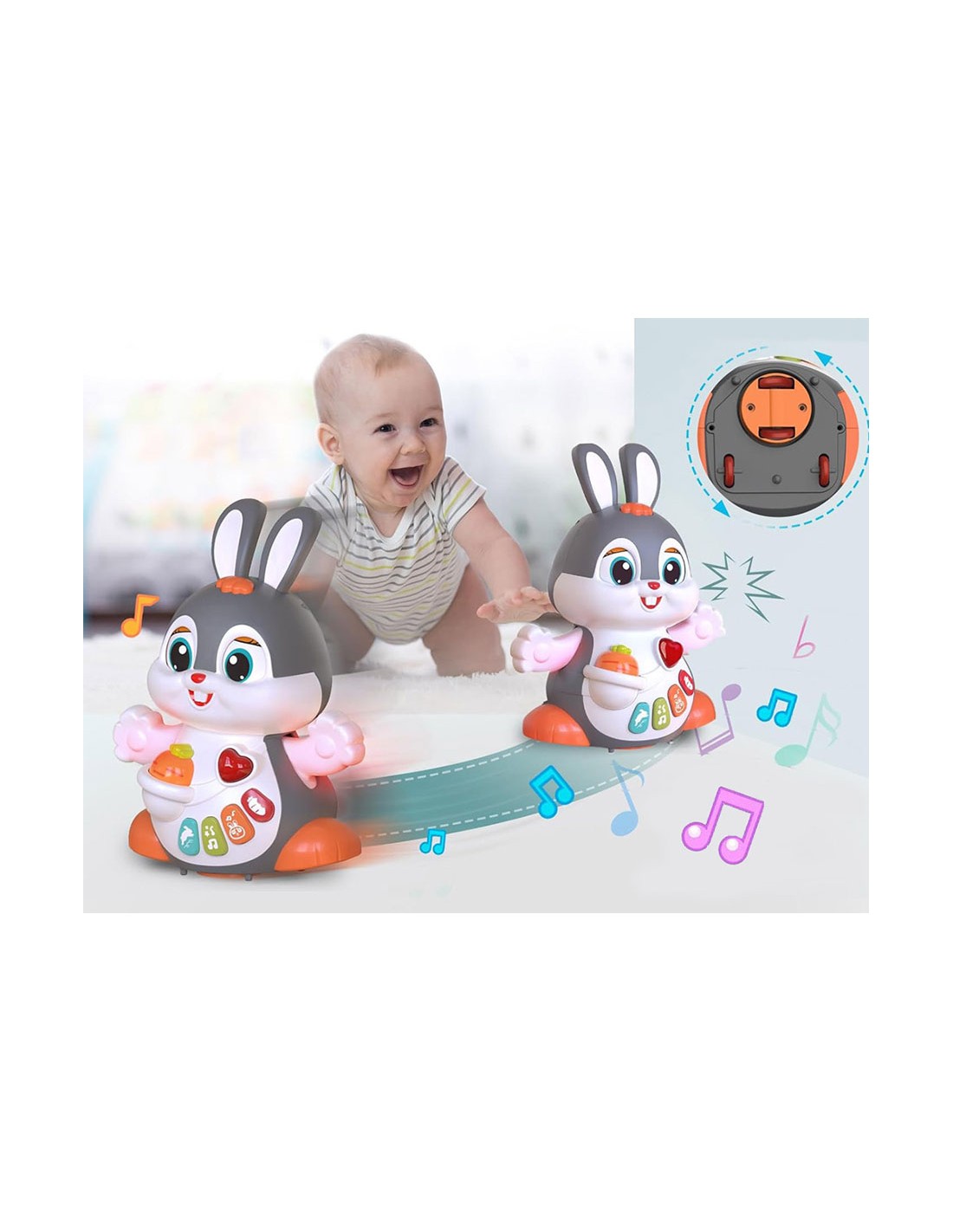 Interaktyvus važinėjantis žaislas „Dancing Bunny“ – šokantis zuikis su muzika ir šviesomis