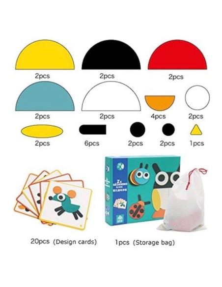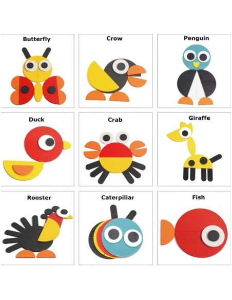 Kūrybingi gyvūnų geometriniai blokai, medinių raštų kaladėlės, galvosūkiai su 20 piešinių