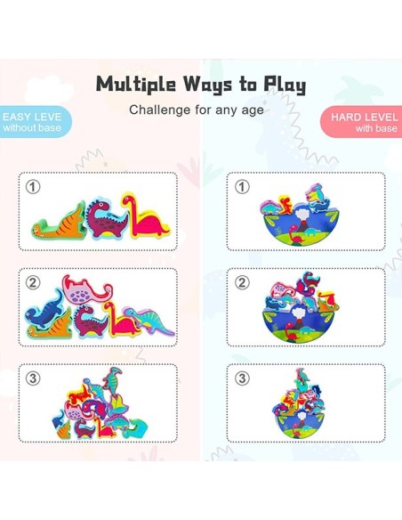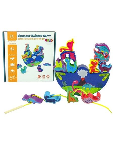 Balansinis žaidimas 2 in 1 "Dinosaur Balance Game"- tai smagus bei kruopštus žaidimas, panaudojant medines detales, žaidėjui reikia uždėti medinę dinozauro figūrą ant menulio formos pado. Svarbiausia žaidime, kad piramidė nesugriūtų.