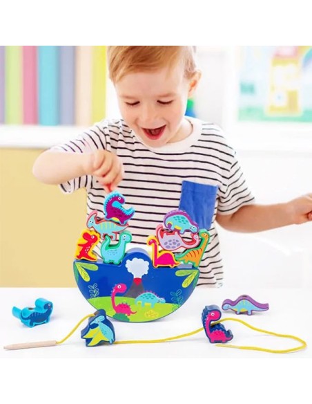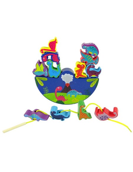 Balansinis žaidimas 2 in 1 su dinozaurais + vėrimas