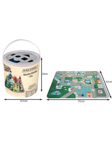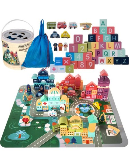 Mediniai miesto kvartalai su rūšiuokliu, dėlionėmis ir krepšeliu - tai puikus žaislas, kuris ne tik suteiks vaikui daug džiaugsmo ir pramogų, bet ir padės lavinti jo vaizduotę, motorikos įgūdžius, koordinaciją ir loginį mąstymą.