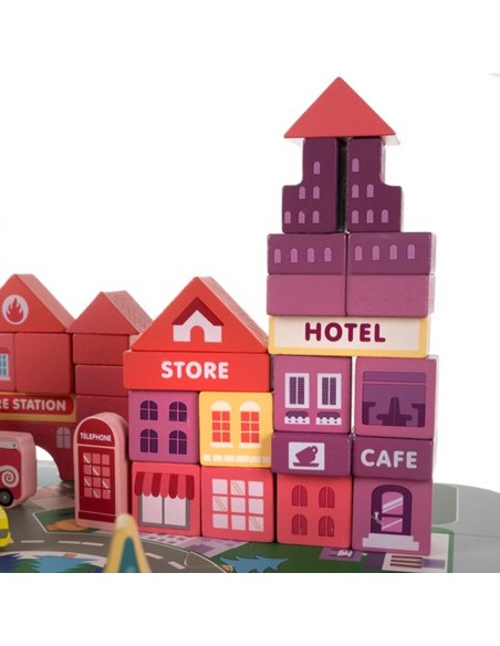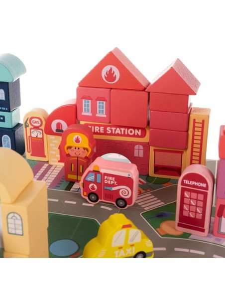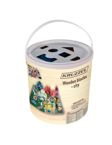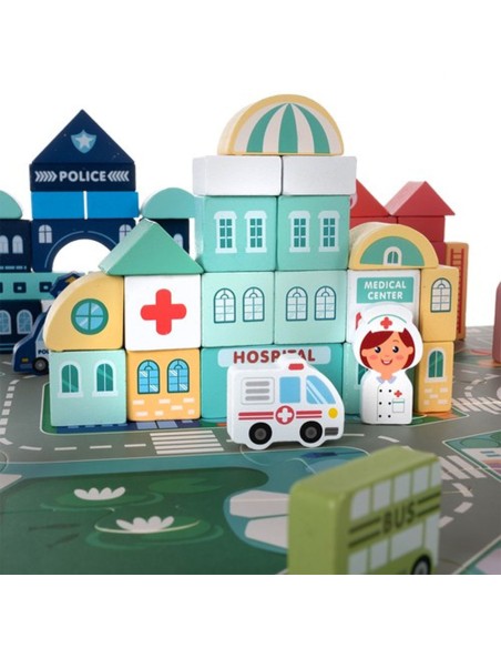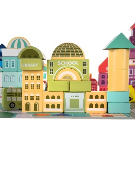 Spalvotos medinės kaladėlės 100 dalių "Miestas"