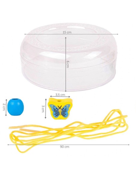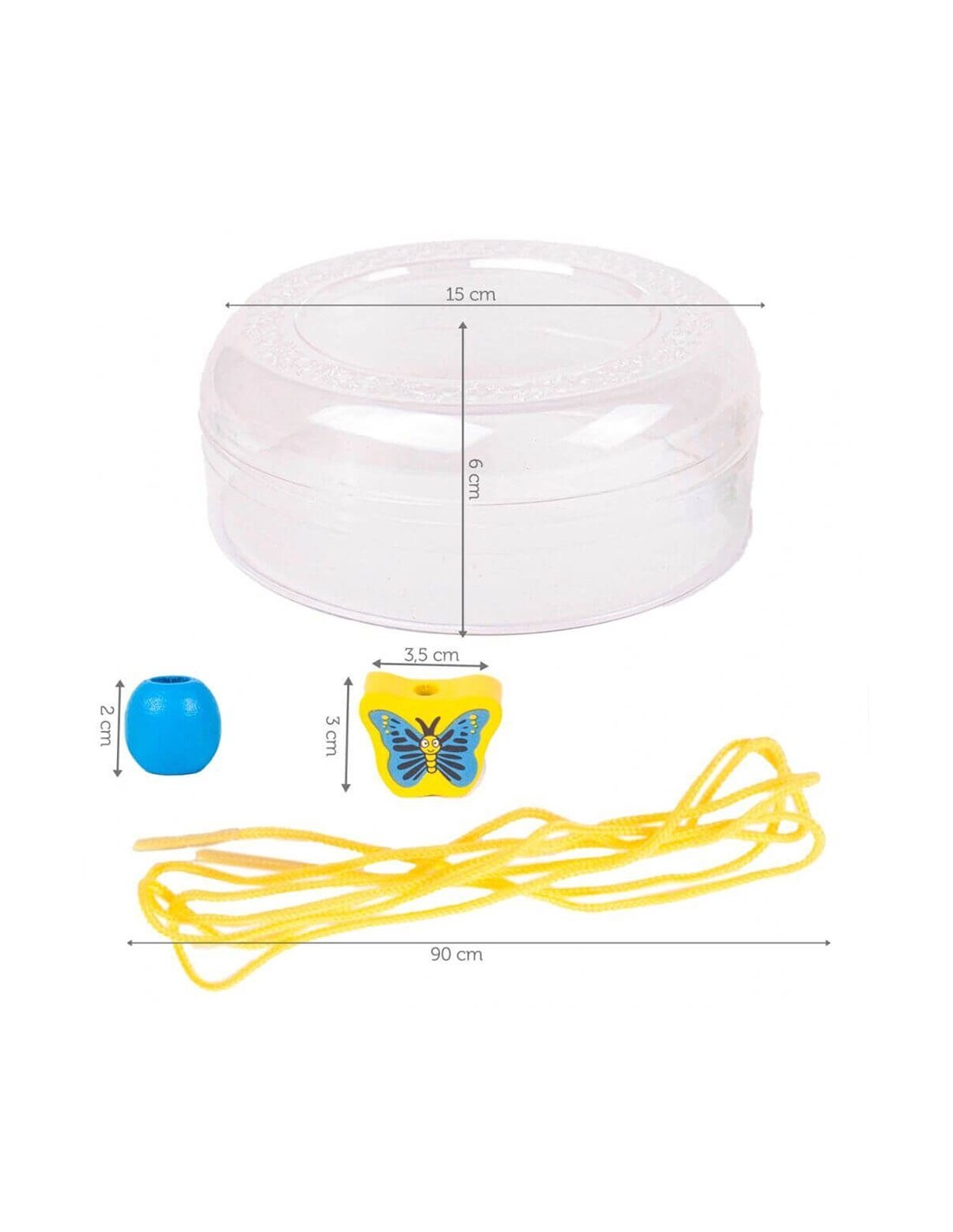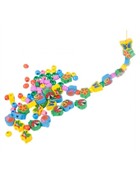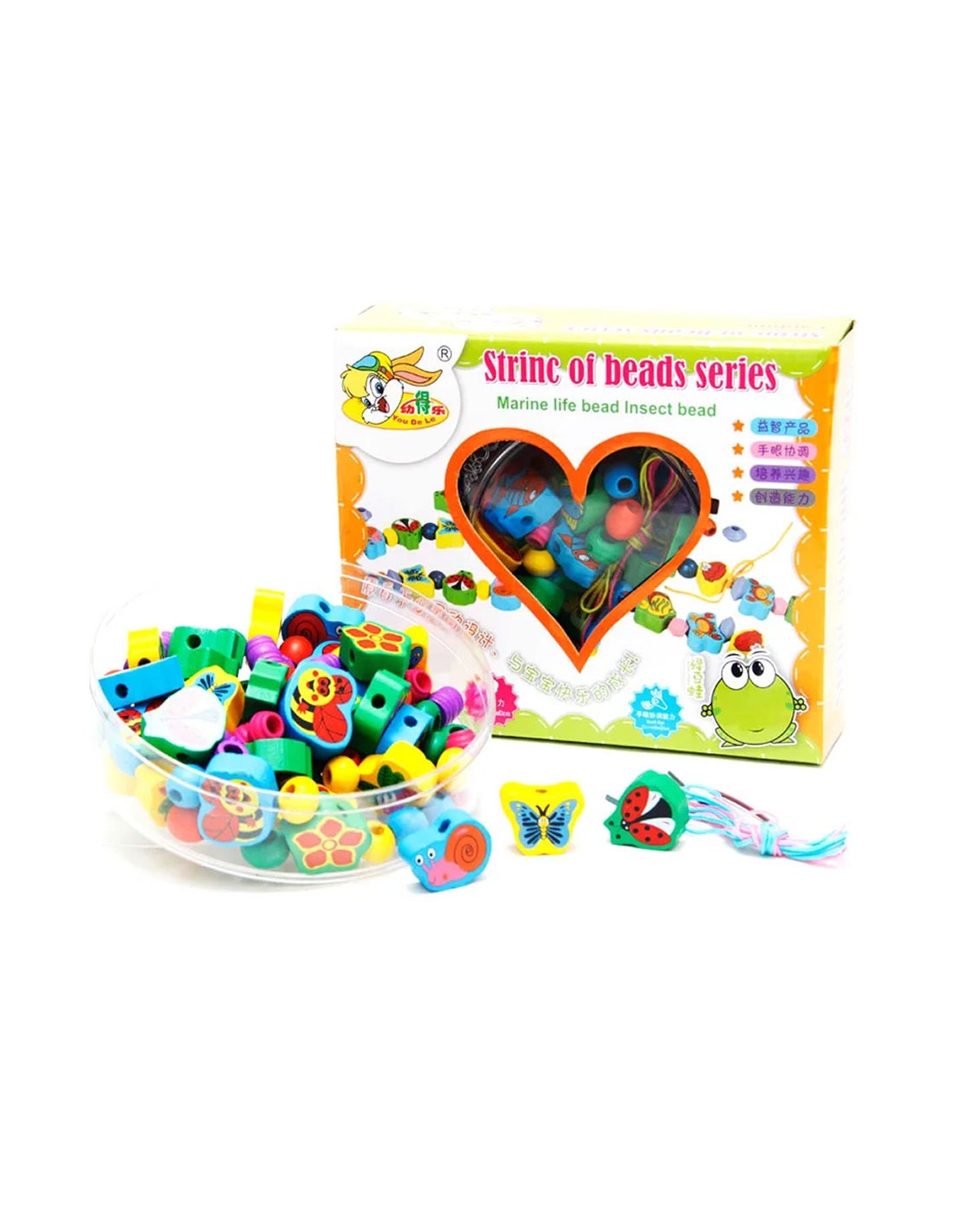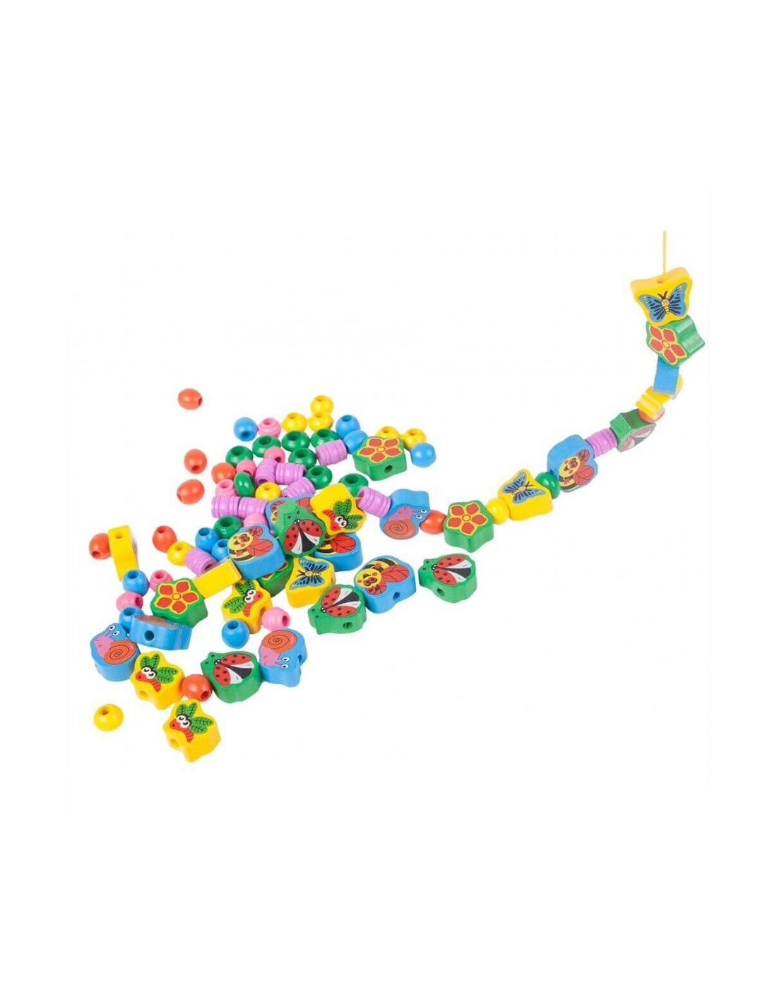 76 detalių medinis vėrimo rinkinis „Vabzdžiai“! Lavinkite vaiko motoriką kurdami spalvingus karolius. Rinkinyje 24 figūrėlių, 50 karoliukų ir 2 virvelės.