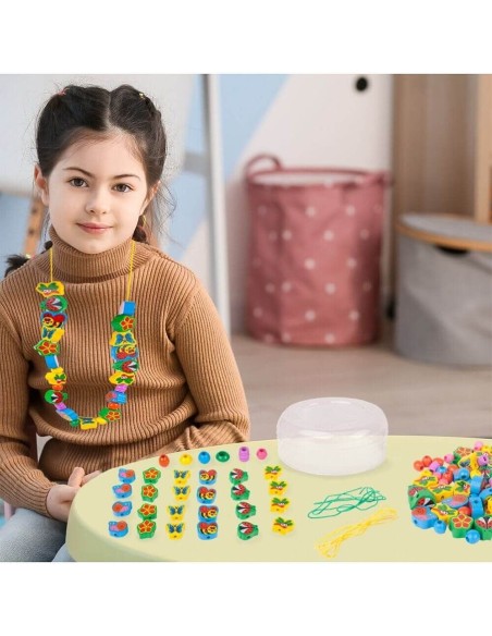 Leiskite vaikui pasinerti į spalvingą gamtos pasaulį! Šis gausus medinių karoliukų rinkinis yra puikus būdas derinti kūrybą su naudingais lavinamaisiais pratimais. Ryškios detalės su bitutėmis, drugeliais ir gėlėmis ne tik džiugina akį, bet ir leidžia mažiesiems kūrėjams pasigaminti gausybę unikalių papuošalų sau ar draugams.