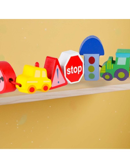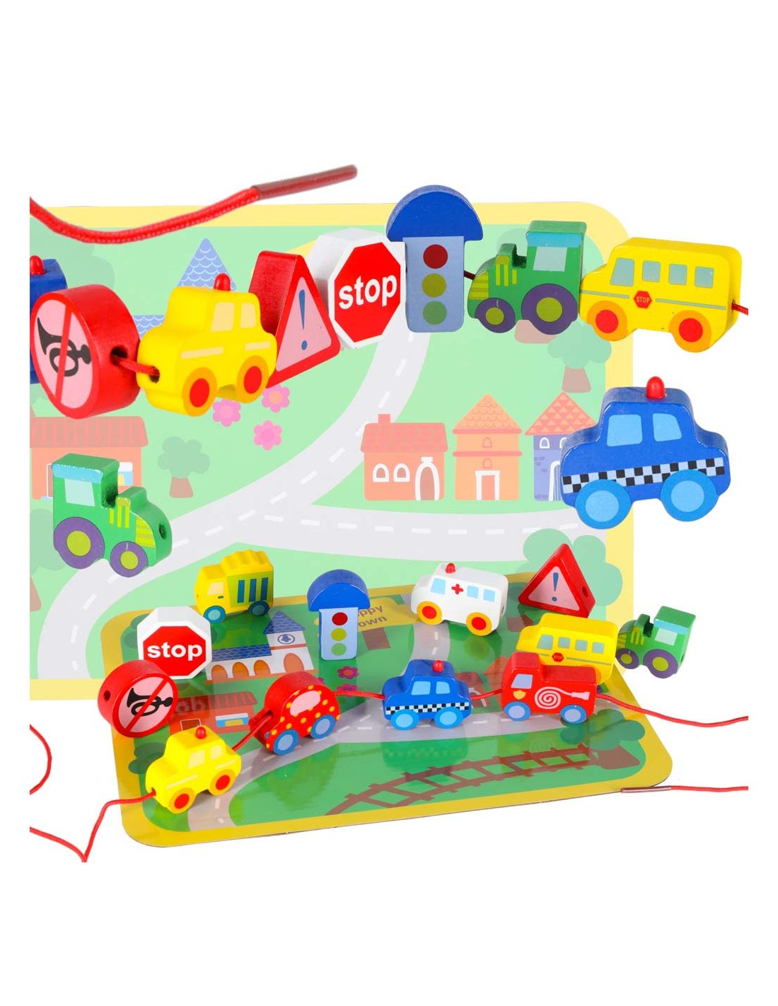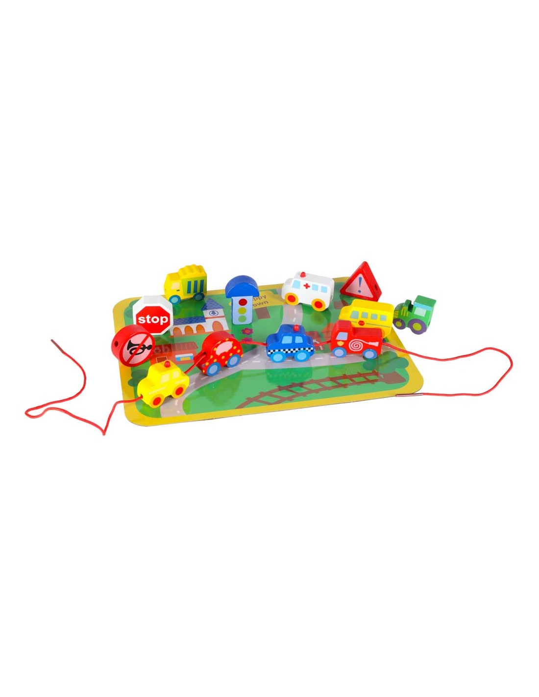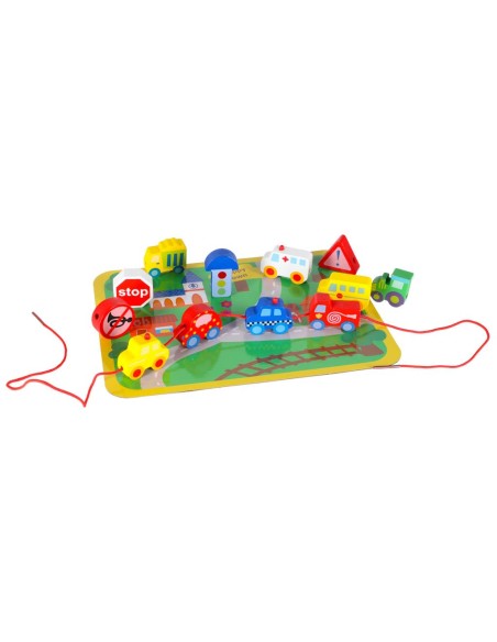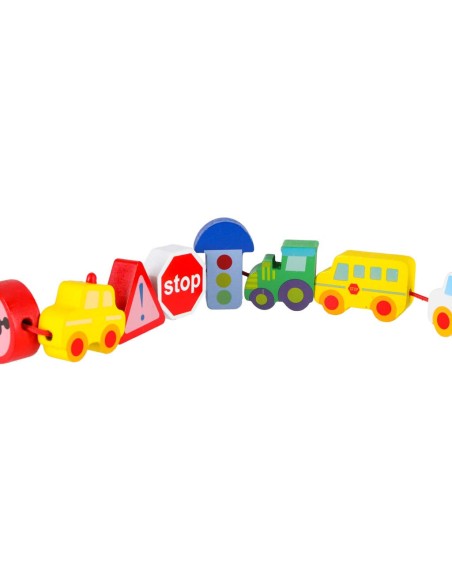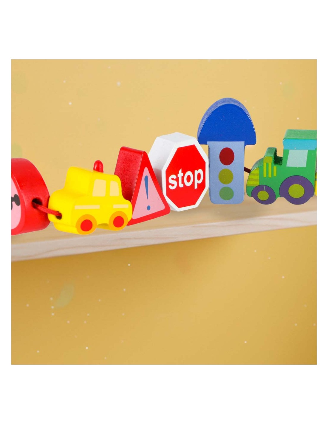 Supažindinkite savo mažąjį tyrinėtoją su žavingu medinių žaislų pasauliu! Šis klasikinis sriegimo rinkinys yra ne tik smagi pramoga, bet ir vertinga priemonė, padedanti vaikui natūraliai tobulėti. Naudodamas spalvingas transporto priemones ir virvelę, vaikas kuria savo istorijas žaidimų lentoje, kartu atrasdamas spalvų, formų ir simetrijos dėsnius.