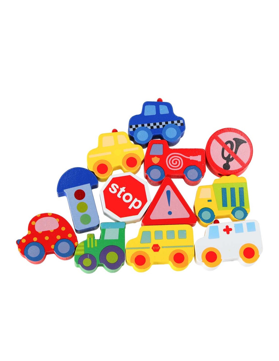 Medinis sriegimo rinkinys „Transportas“: 12 detalių, lenta ir virvelė. Lavina motoriką, kantrybę ir STEM įgūdžius. Saugus, ekologiškas žaislas nuo 3 m.