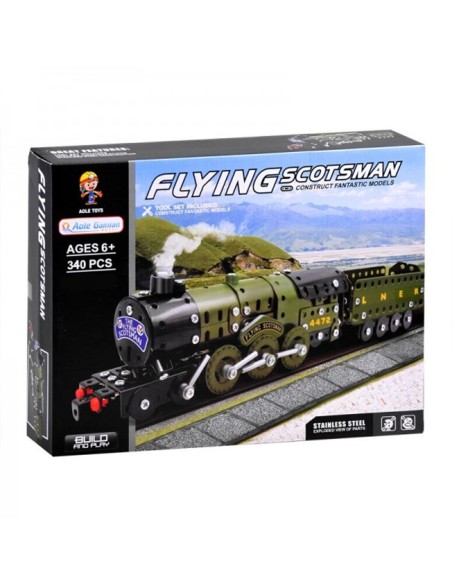 Metalinis konstruktorius „Flying Scotsman“ 6+ m. Surink 340 detalių garvežį. Skatina STEM mokymąsi. Rinkinyje yra įrankiai.