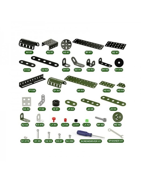 Aukštos Kokybės Metalinės Detalės: Pagaminta iš metalo, konstrukcija yra ilgaamžė ir suteikia realistiškumo jausmą, palyginti su plastikiniais konstruktoriais.
