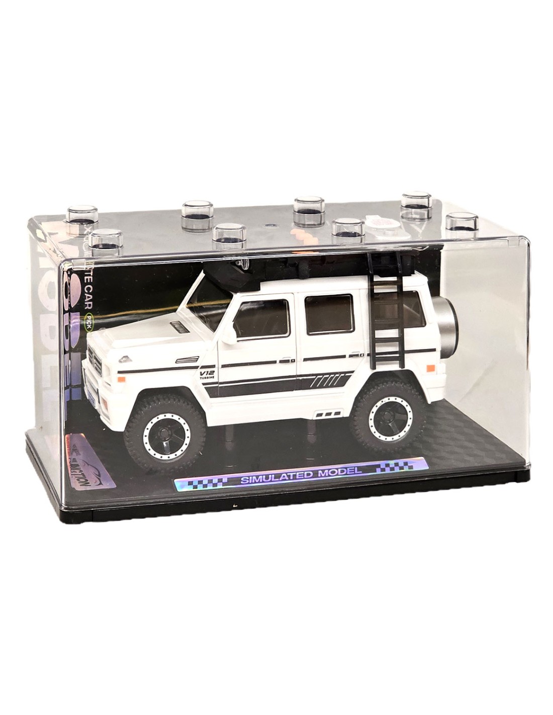 Šis džipo modeliukas – puiki dovana kiekvienam automobilių entuziastui. Jis stebina savo detaliu ir tikrovišku dizainu, o dėl įmontuotų garso ir šviesos efektų bei atsidarančių durų vaikai gali pasinerti į nuotykius. Frikcinė pavara leidžia automobiliui važiuoti į priekį, o tai suteikia dar daugiau smagių žaidimo akimirkų. Modeliukas supakuotas stilingoje dovanų dėžutėje, todėl puikiai tinka ne tik žaidimui, bet ir eksponavimui.