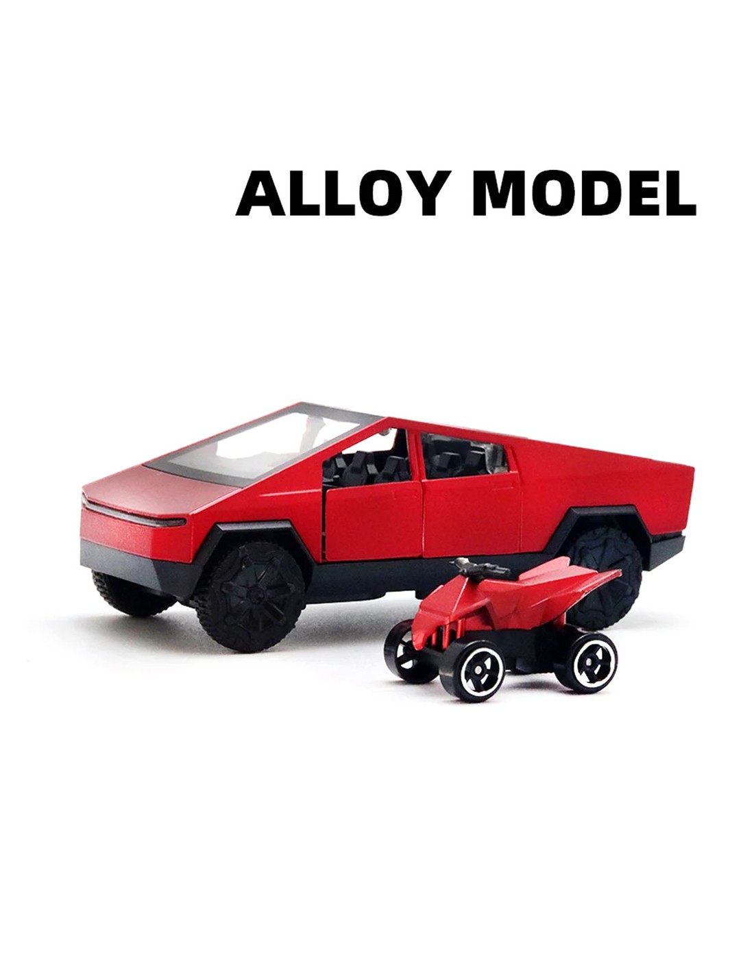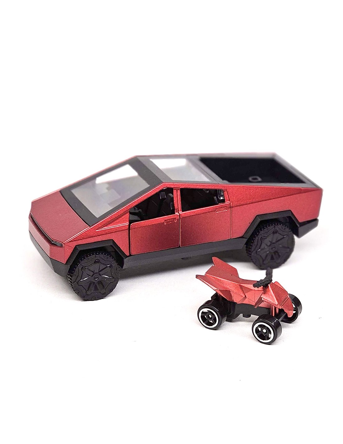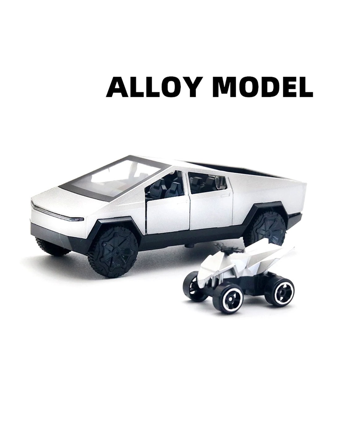 Metalinis „Tesla Cybertruck“ modelis (1:32) su keturračiu. Šviesos, garsas, inercinė pavara ir atidaromos durelės. Tvirta dovana jauniesiems automobilių gerbėjams!