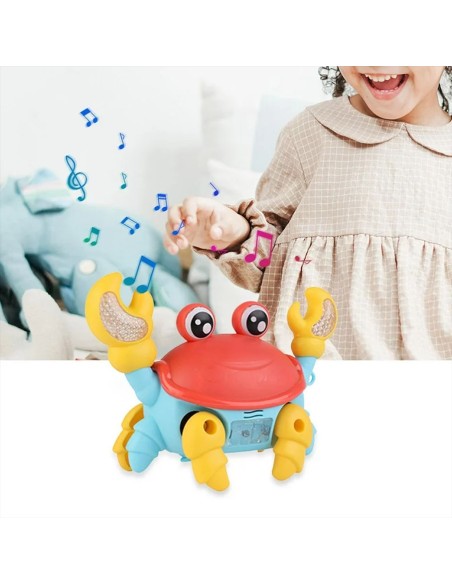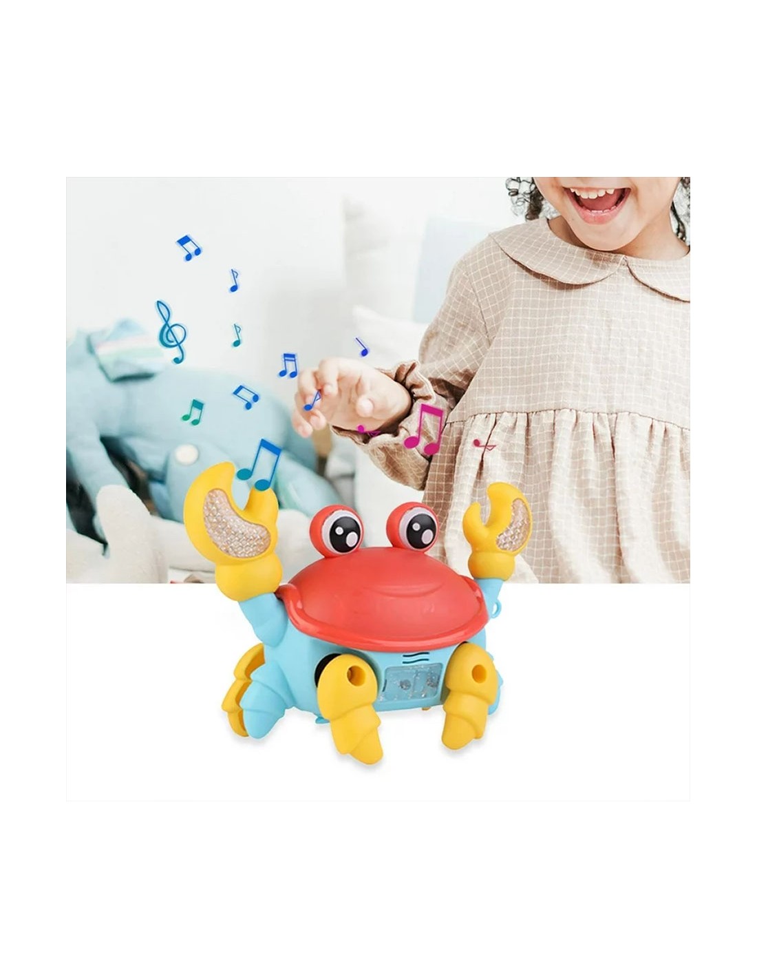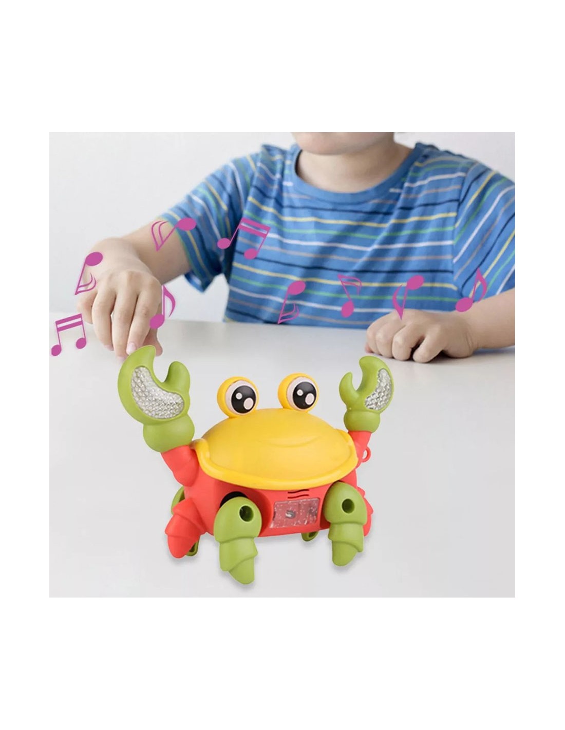 Raudonasis krabas ne tik šliaužioja, bet ir groja muziką – to dėka žaidžiant bus stimuliuojama ir vaiko klausa.