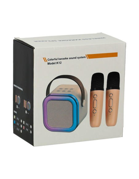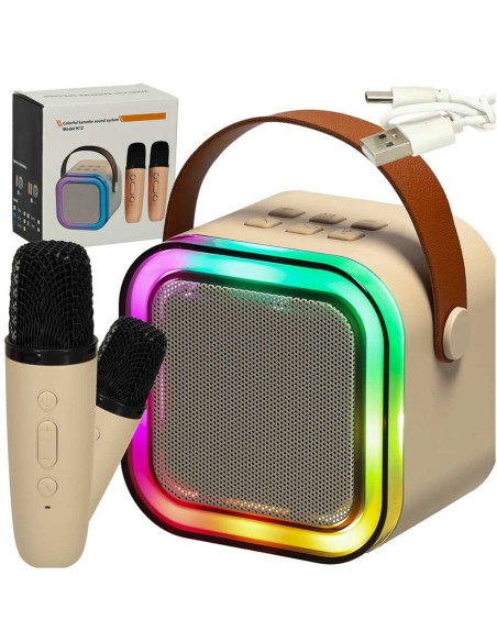 Mūsų nešiojama karaoke sistema su dviem mikrofonais ir spalvingomis LED šviesomis leis tau ir tavo draugams pasijusti tikromis muzikos žvaigždėmis. Nesvarbu, ar būsi namuose, ar lauke – su šiuo rinkiniu linksmybės niekada nesibaigs!