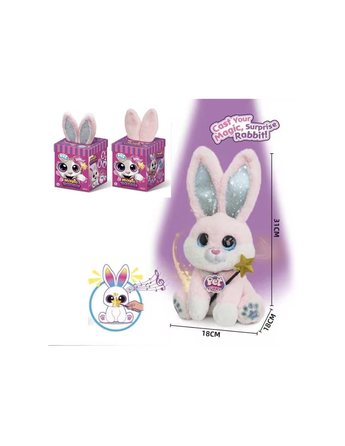 Tikra magija su lazdele: Pamojuokite arba priglauskite žvaigždės formos lazdelę prie triušio nosies ar ausų, ir jis stebuklingai atgis!