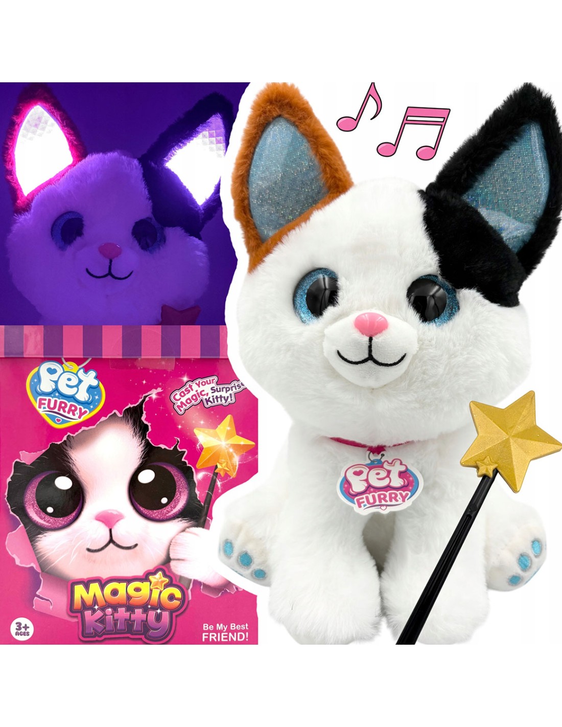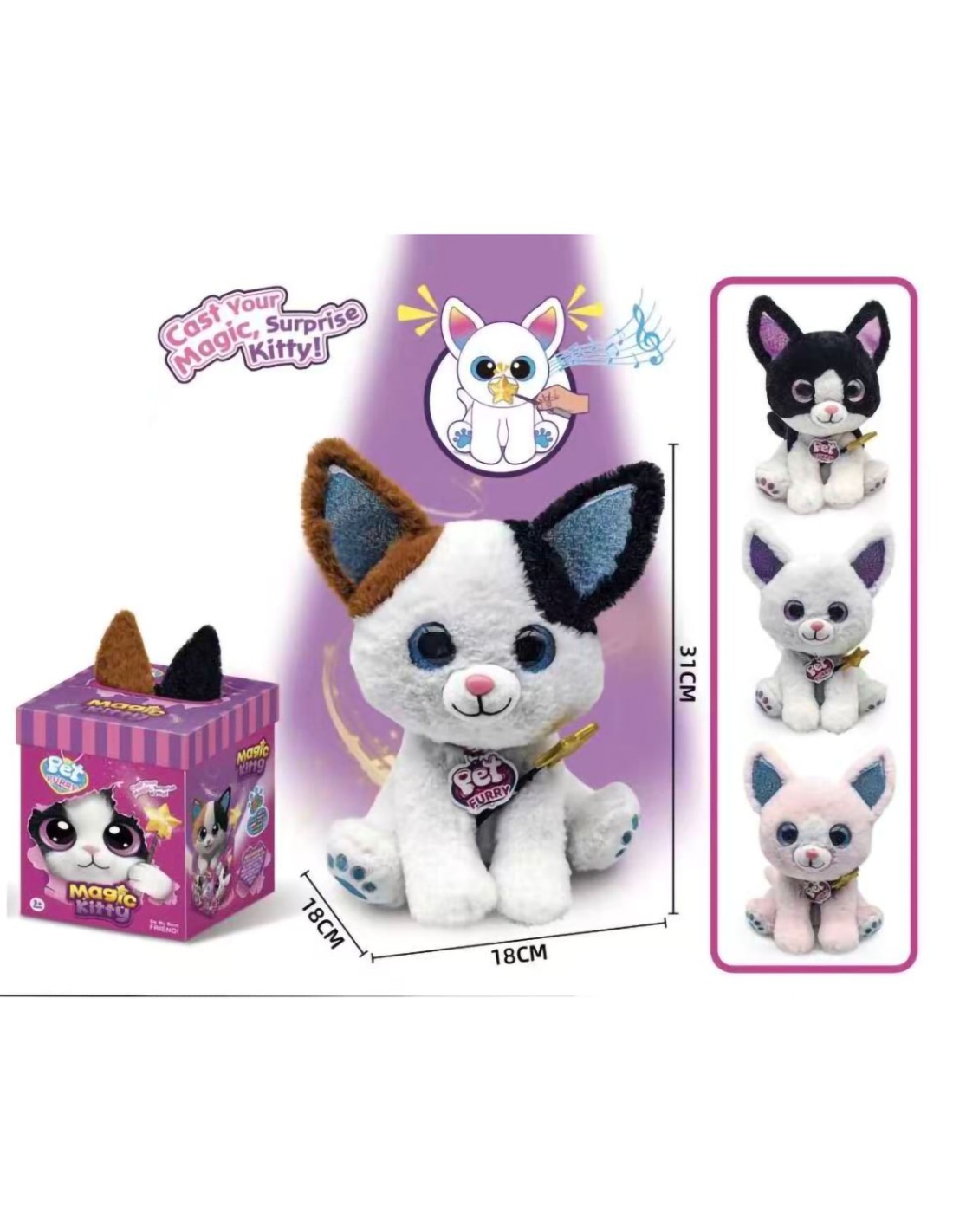 Magiškas pliušinis kačiukas su interaktyvia lazdele! Įrašyk savo balsą, klausykis burtų ir stebėk šviečiančias ausis. Puiki lavinamoji dovana vaikams.