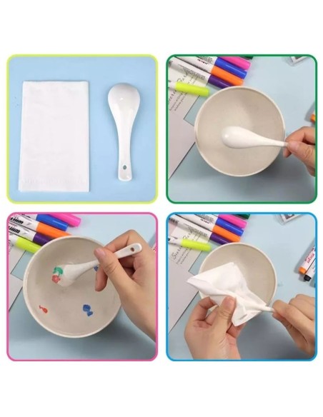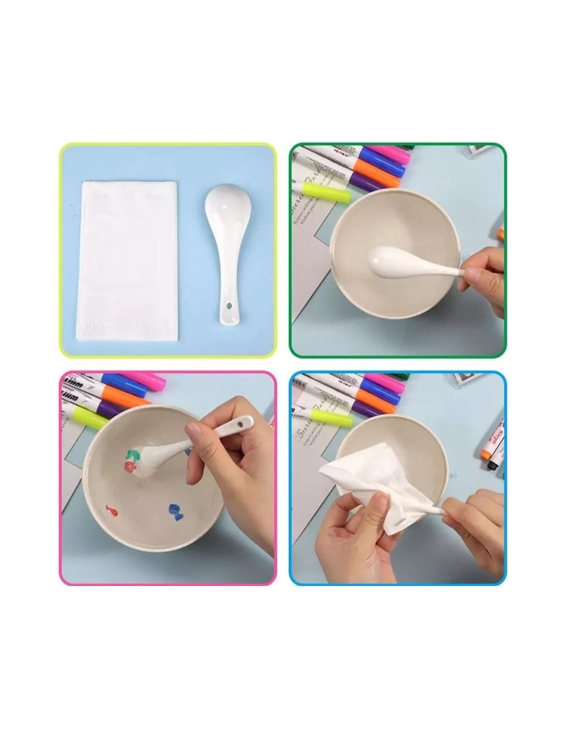 - Pakuotėje yra 12 flomasterių ir vienas porcelianinis šaukštas.