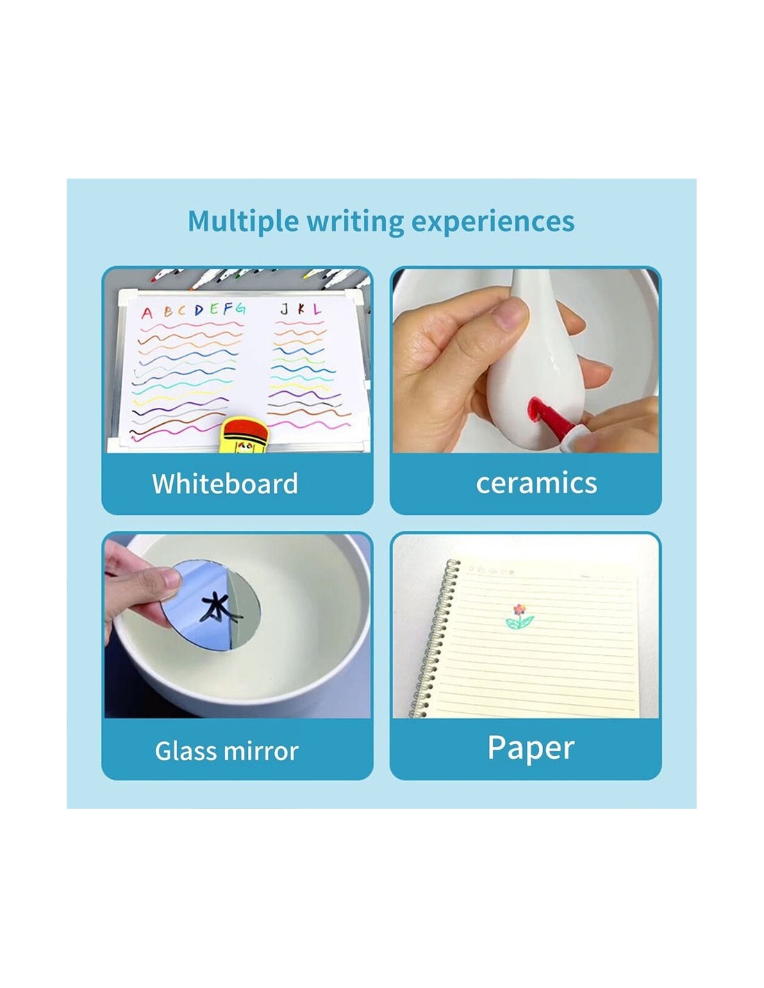 - Flomasterių spalvos ryškios ir aiškios, tinka vaikų piešiniams ant popieriaus, rašymui ir piešimui klasėje.