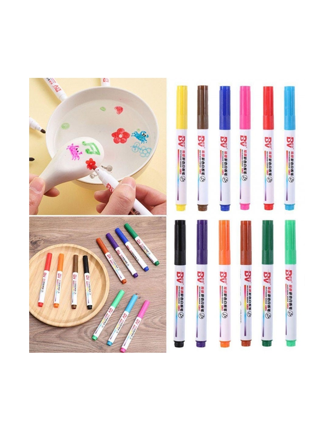 12 flomasterių su šaukštu, plūduriuojantys vandenyje piešinukai