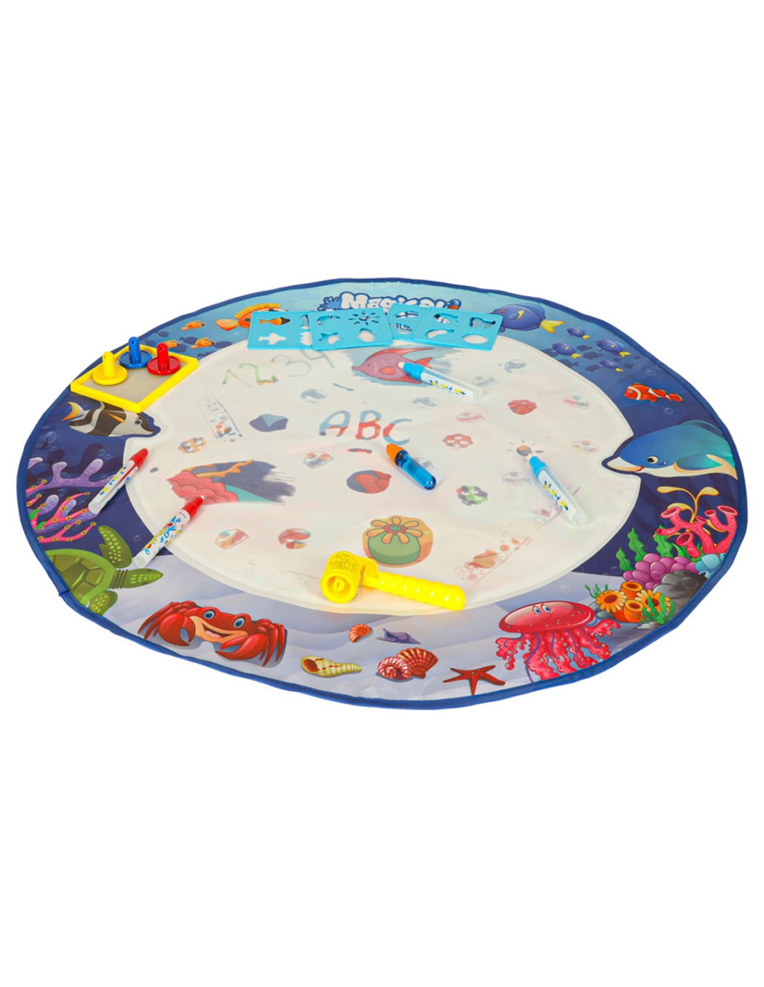 Apvalus vandens piešimo kilimėlis „Povandeninis pasaulis“ – magiška kūryba be jokios netvarkos!