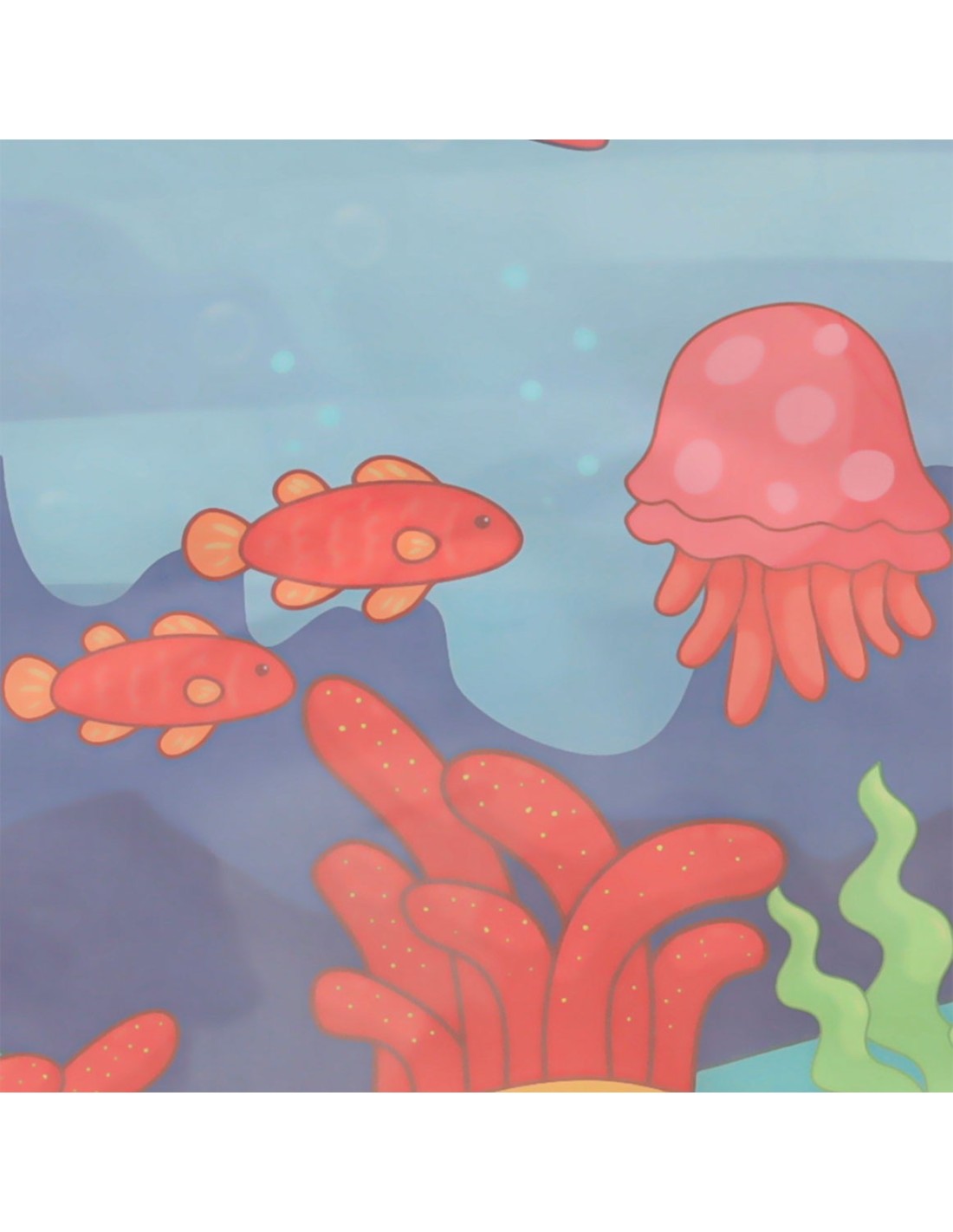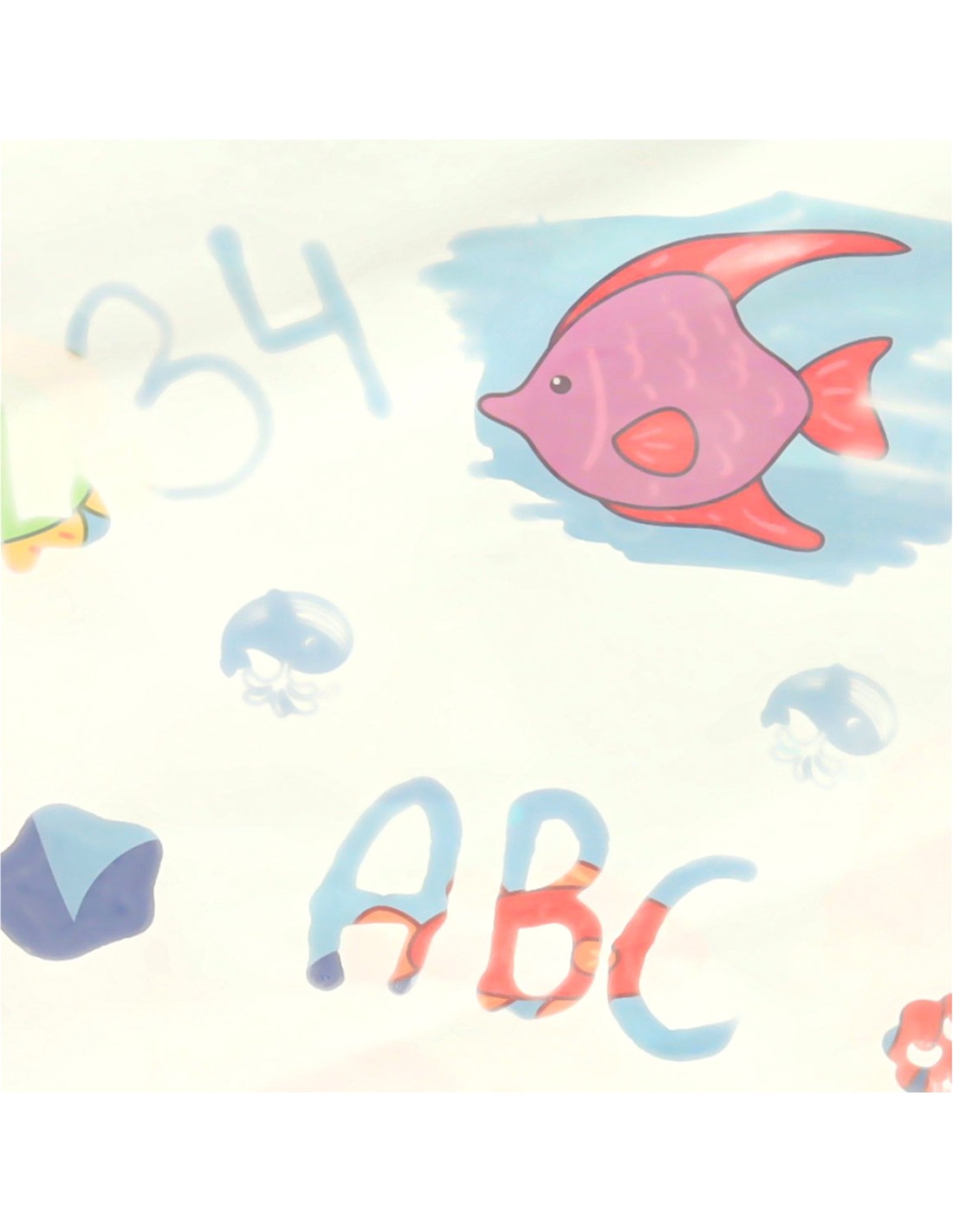Atradimų džiaugsmas: Piešiant ant balto paviršiaus išryškėja spalvingos povandeninio pasaulio iliustracijos ir paslėptos formos, kurios skatina vaiko smalsumą.