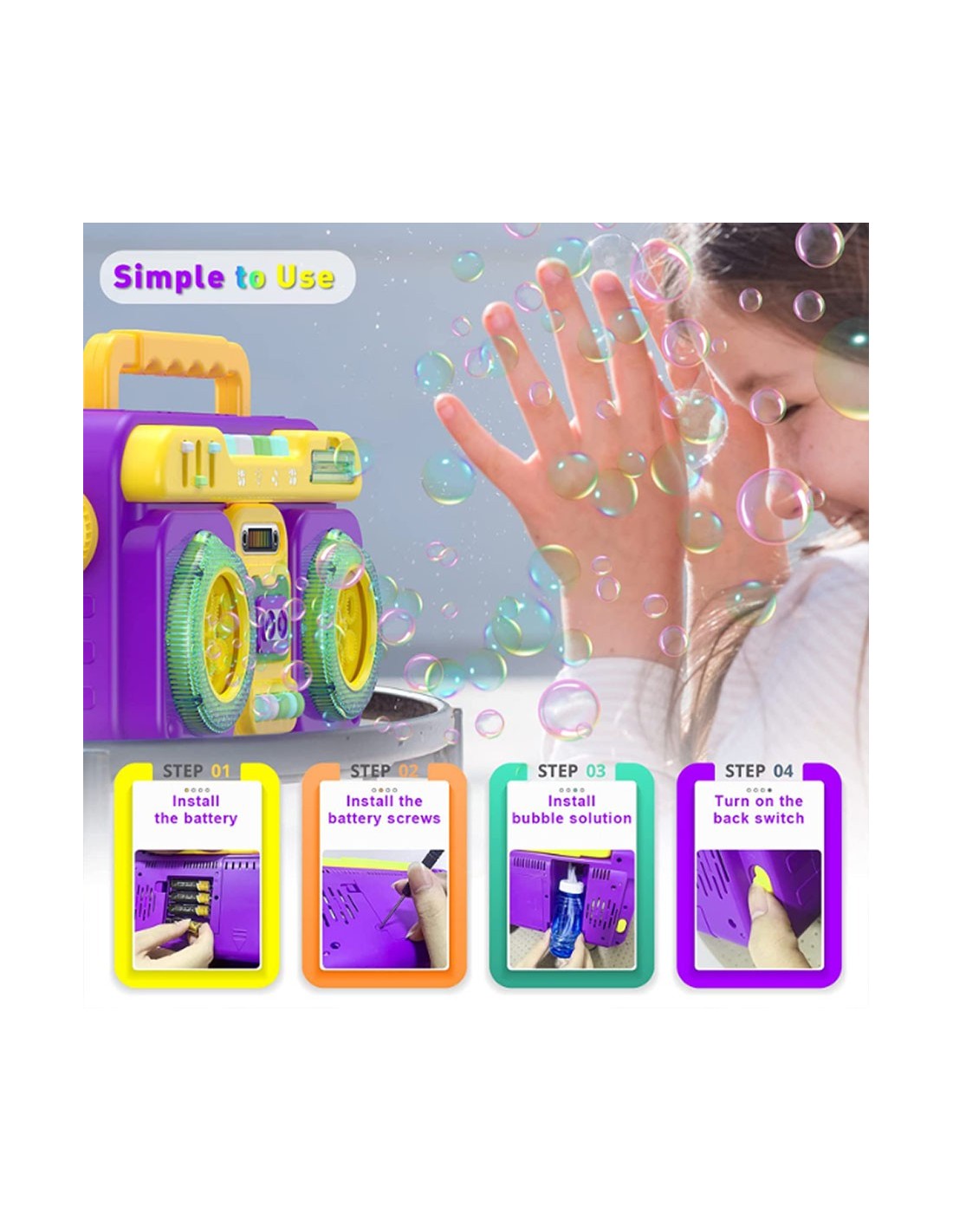 Paverskite bet kurią dieną spalvingu vakarėliu! Stilingas retro radijo grotuvas – tai ne tik interjero puošmena, bet ir galingas burbulų generatorius, sukuriantis tikrą magiją jūsų namuose ar kieme. Šis sensorinis žaislas vienu metu pučia tūkstančius burbulų, groja nuotaikingą muziką ir mirksi įvairiaspalvėmis šviesomis, tad vaikai paprasčiausiai negalės jam atsispirti!