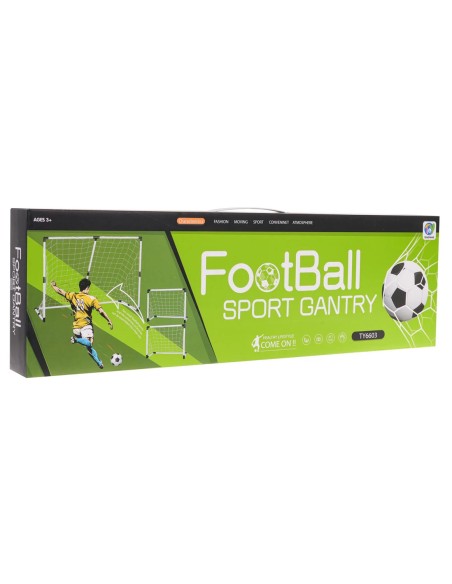 Dideli sodo futbolo vartai (143 cm) su transformacijos galimybe. 103 dalių kokybiškas komplektas sportui kieme. Viskas įskaičiuota: tinklas, kamuolys ir pompa!