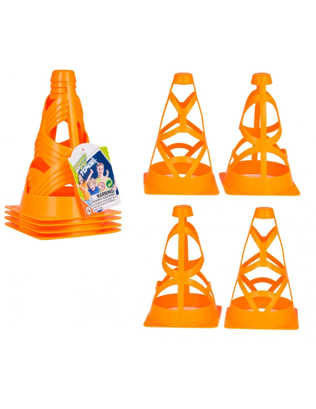 Sukurkite profesionalią sporto aikštelę ar lenktynių trasą bet kur! Šis 4 ryškiai oranžinių kūgių rinkinis yra nepakeičiamas įrankis aktyviems vaikų žaidimams lauke ir viduje. Dėl savo spalvos jie puikiai matomi net iš tolo, todėl žaidimas tampa saugesnis ir organizuotesnis.