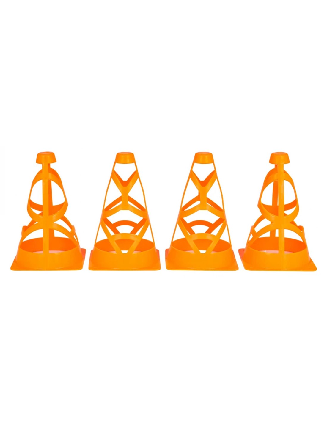 4 ryškiai oranžinių kūgių rinkinis sportui ir žaidimams! Lengvi, stabilūs (su tvirtinimo angomis) ir lengvai sandėliuojami. Puiki priemonė futbolo ar dviračių trasoms.